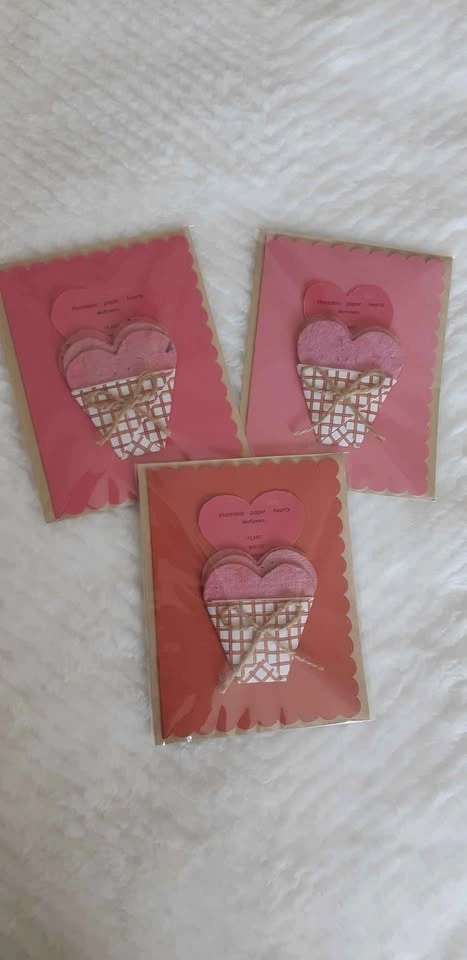 Selling adorable handmade cards with 3 plantable paper hearts, perfect for adding a touch of nature to your greetings. Each card comes with an envelope. The hearts will grow into beautiful flowers when planted. Just put each one under the soil in sunlight, water and watch plants grow. Pick up in North Oshawa.