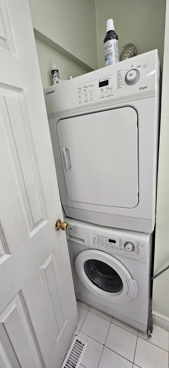 Selling a Samsung dryer. Dryer in good working condition and ready for a new home. Great for small spaces 24" condo size. Washing machine ( don't have to buy) it is for free if you wish. Washer need to be repaired. All for $160 of just dryer.
