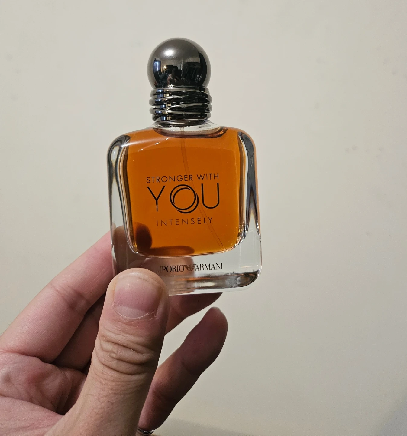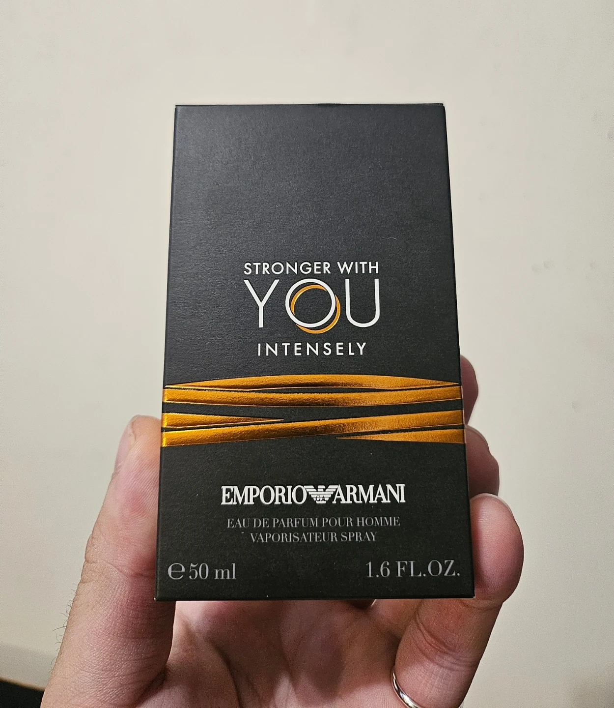 Emporio Armani Stronger With You Intensely Eau de Parfum spray. This fragrance is 50 ml. It's a scent with notes of pink pepper and vanilla.