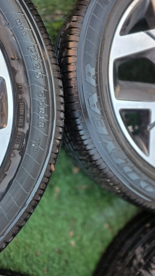 Selling four 18-inch Goodyear Eagle all-season tires. Tires are from 2025 and have 95% of the tread remaining. There are no patches or repairs. Tire size is 225/55/18. These tires may fit various Audi, Buick, Chevrolet, Chrysler, Dodge, Ford, Hyundai, Infiniti, Jeep, Kia, Lexus, Nissan, Subaru, and Toyota models. Please verify fitment for your specific vehicle.
