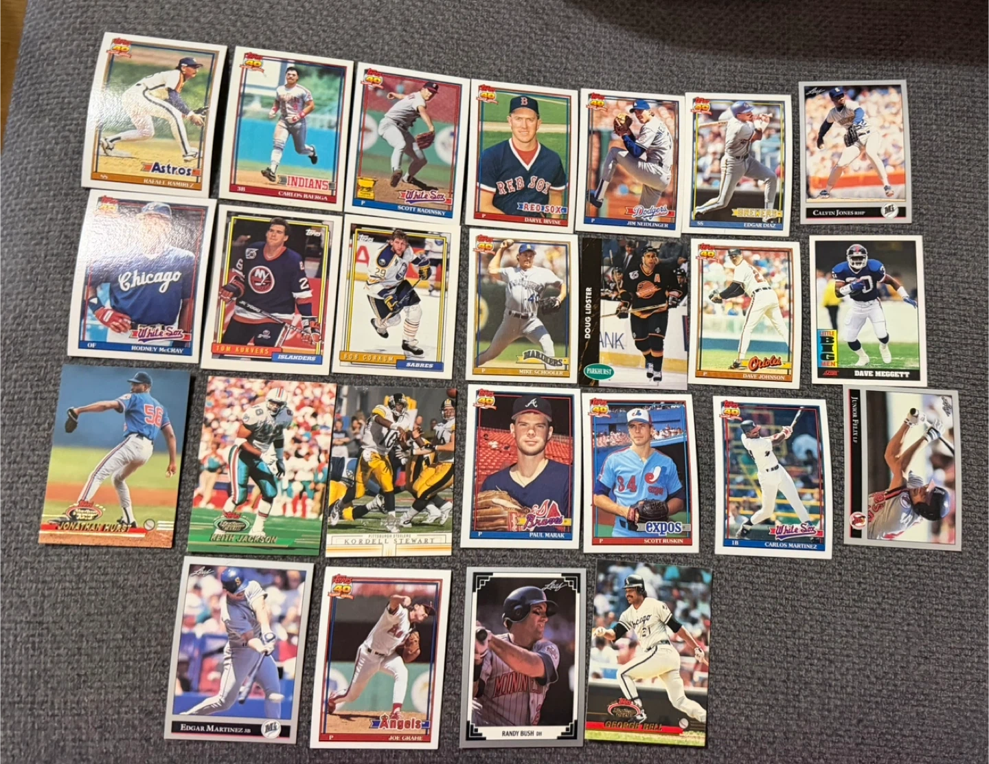 This lot features a collection of baseball cards including players like Rafael Ramirez, Scott Radinsky, Daryl Irvine, Edgar Diaz, and George Bell. It also includes hockey cards of Tom Kurvers and Doug Lister. A great assortment for any collector!