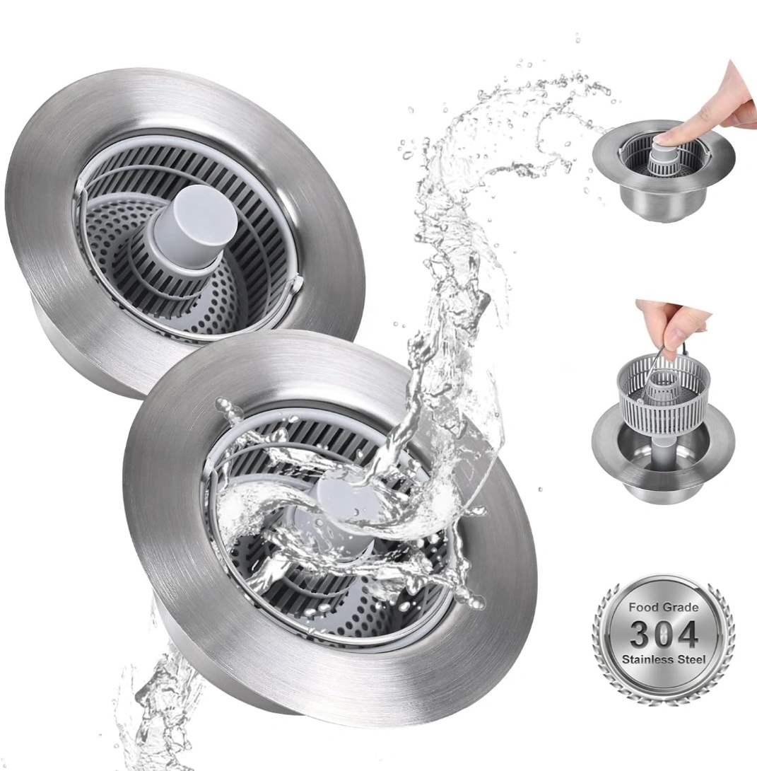 ✅POP-UP KITCHEN SINK STOPPER: Our kitchen sink drain stopper features the 2024 latest upgraded bounce core design, making water collection as easy as pressing the spring-loaded button – perfect for hassle-free food washing in the kitchen. Another press, and the water drains swiftly, effectively filtering out food scraps.