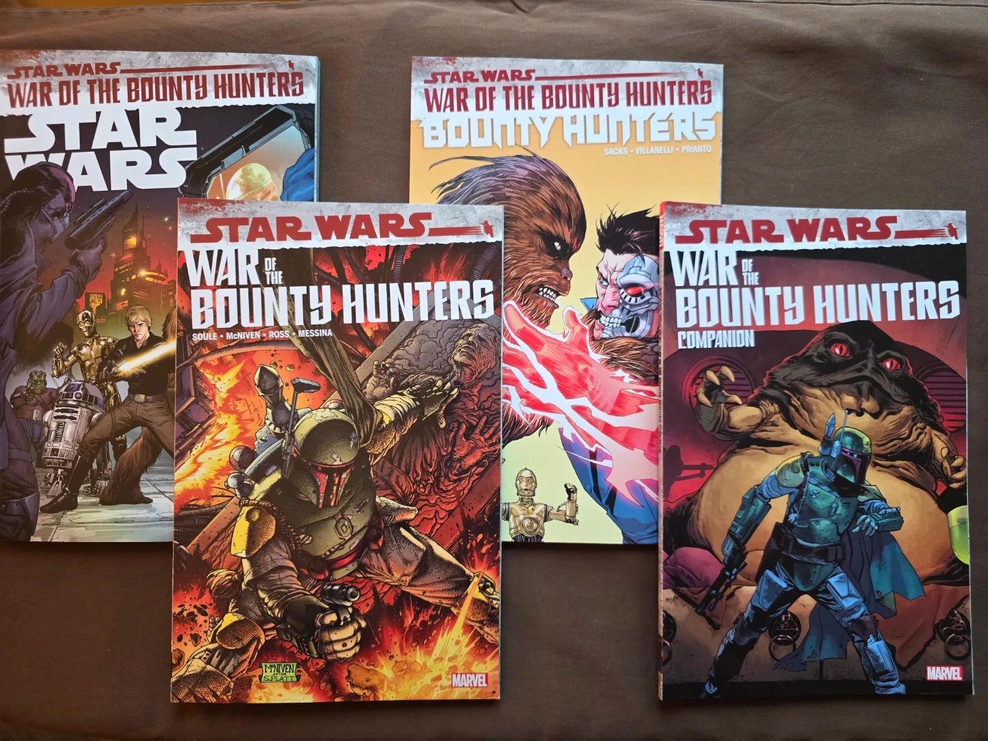 This is a collection of Star Wars: War of the Bounty Hunters comic books. It includes the main series and the companion book. These comics feature stunning artwork and an exciting storyline for Star Wars fans.