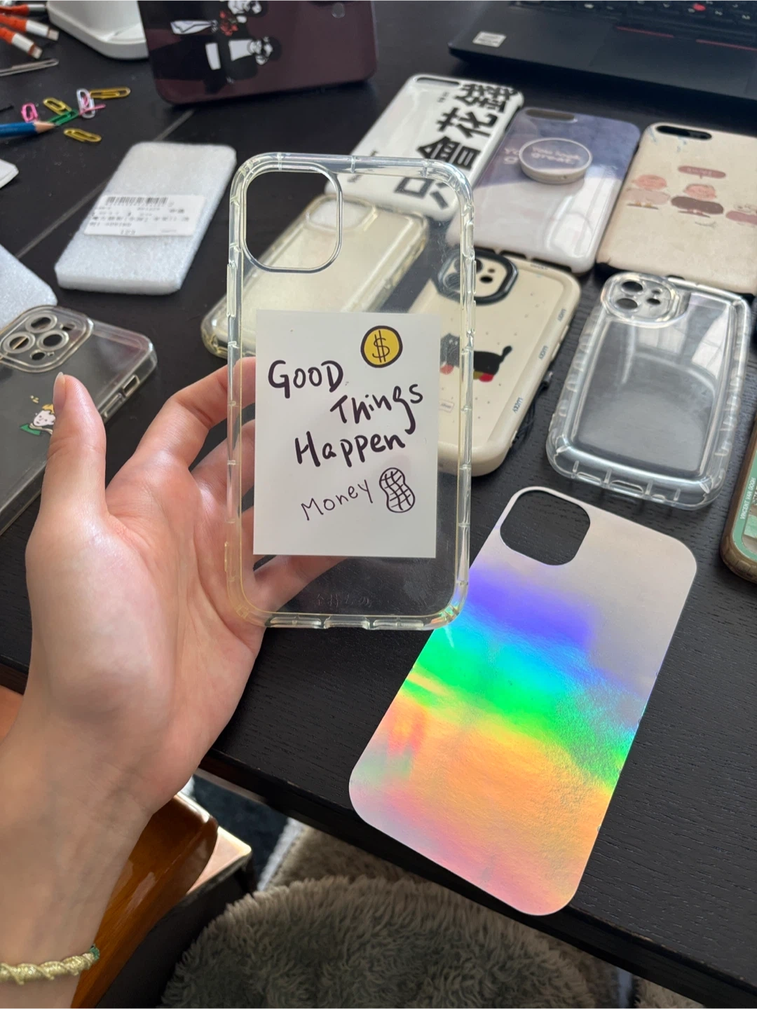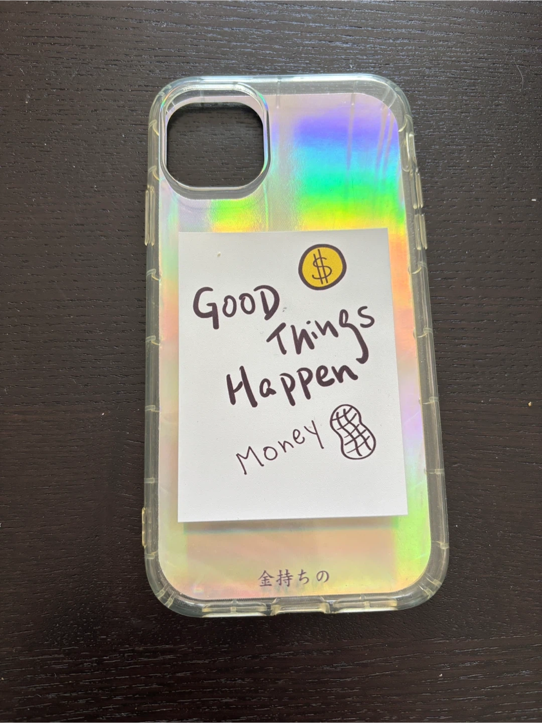 Holographic iPhone Case with "Good Things Happen Money" Sticker