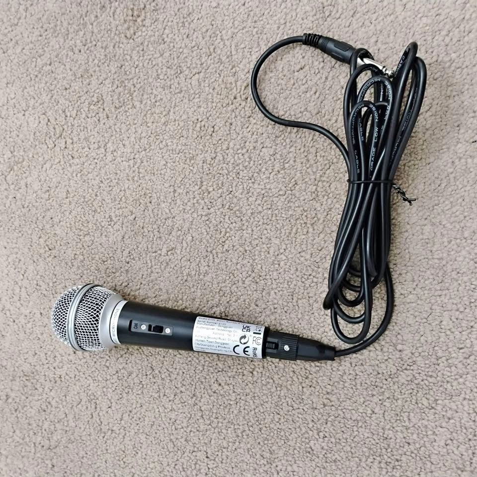 Brand new audio equipment, wired microphone to connect to speakers. The wire isn’t too long, quality is perfect. No glitches or cut outs. Feel free to message if you have any questions!