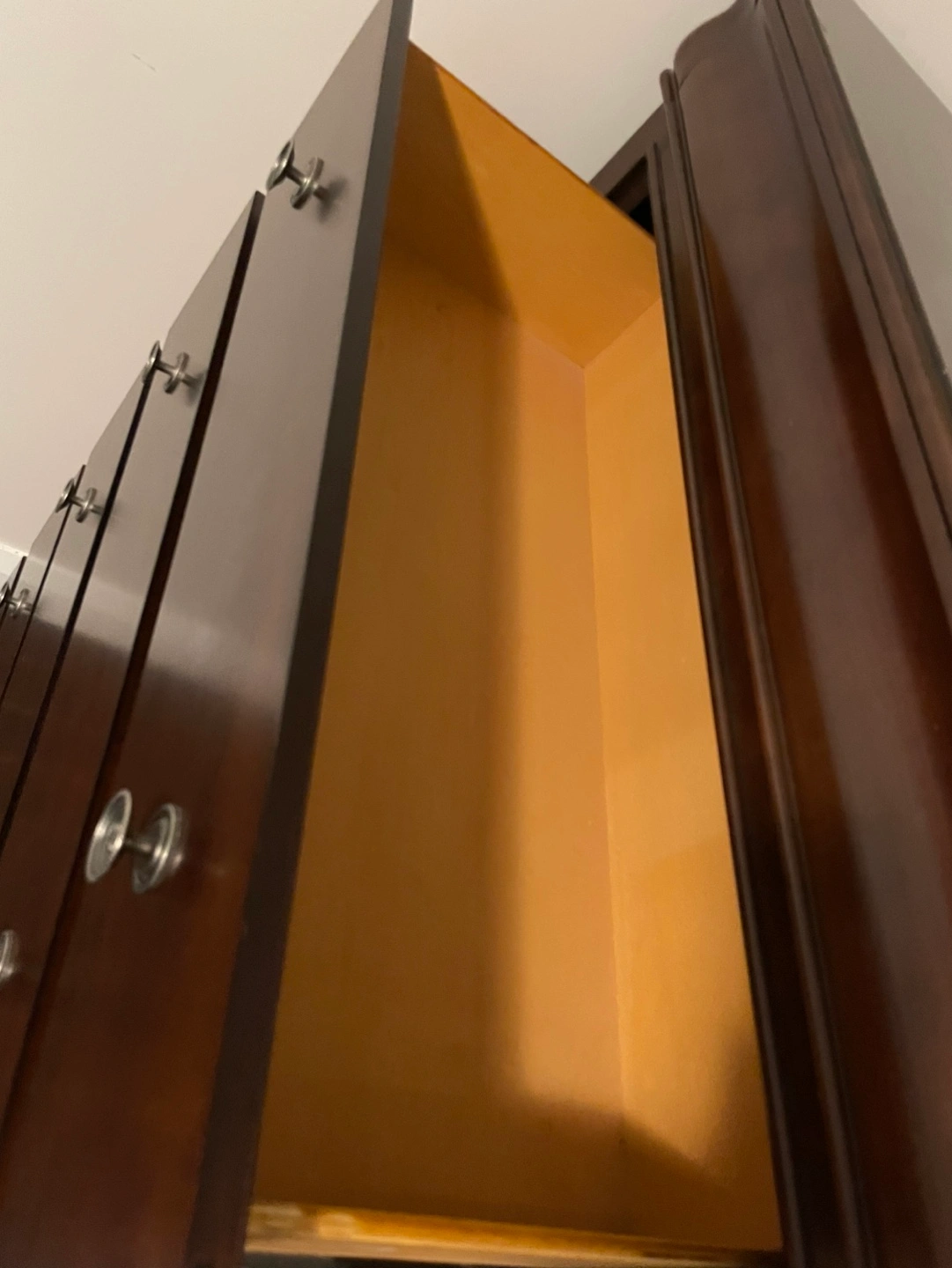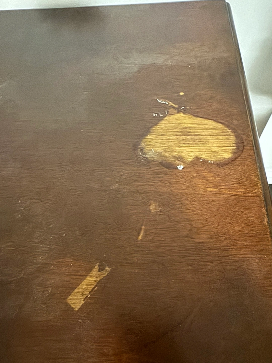 There is a scratch on top of the dresser, which can be fixed with wood paint