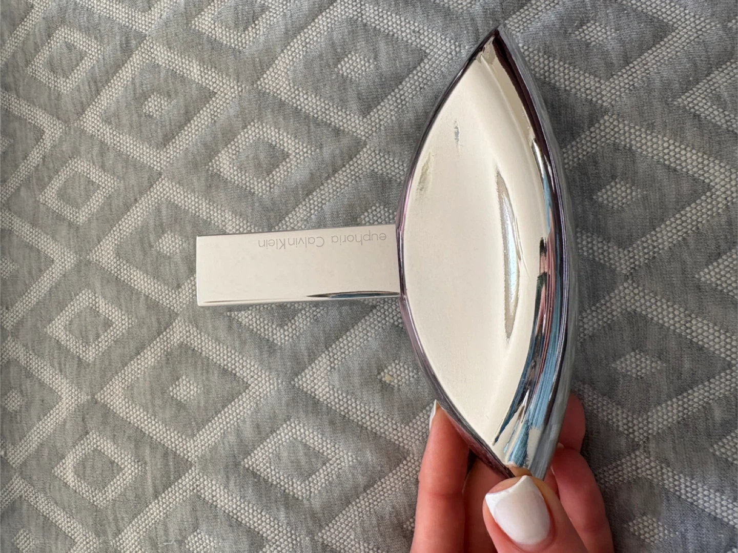 Calvin Klein Euphoria Eau de Parfum. This fragrance comes in a unique, sculptural bottle with a metallic pink finish. It's a captivating scent for everyday wear.