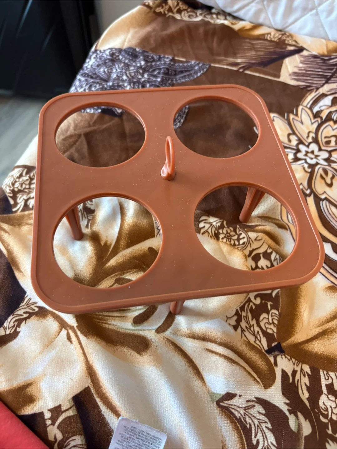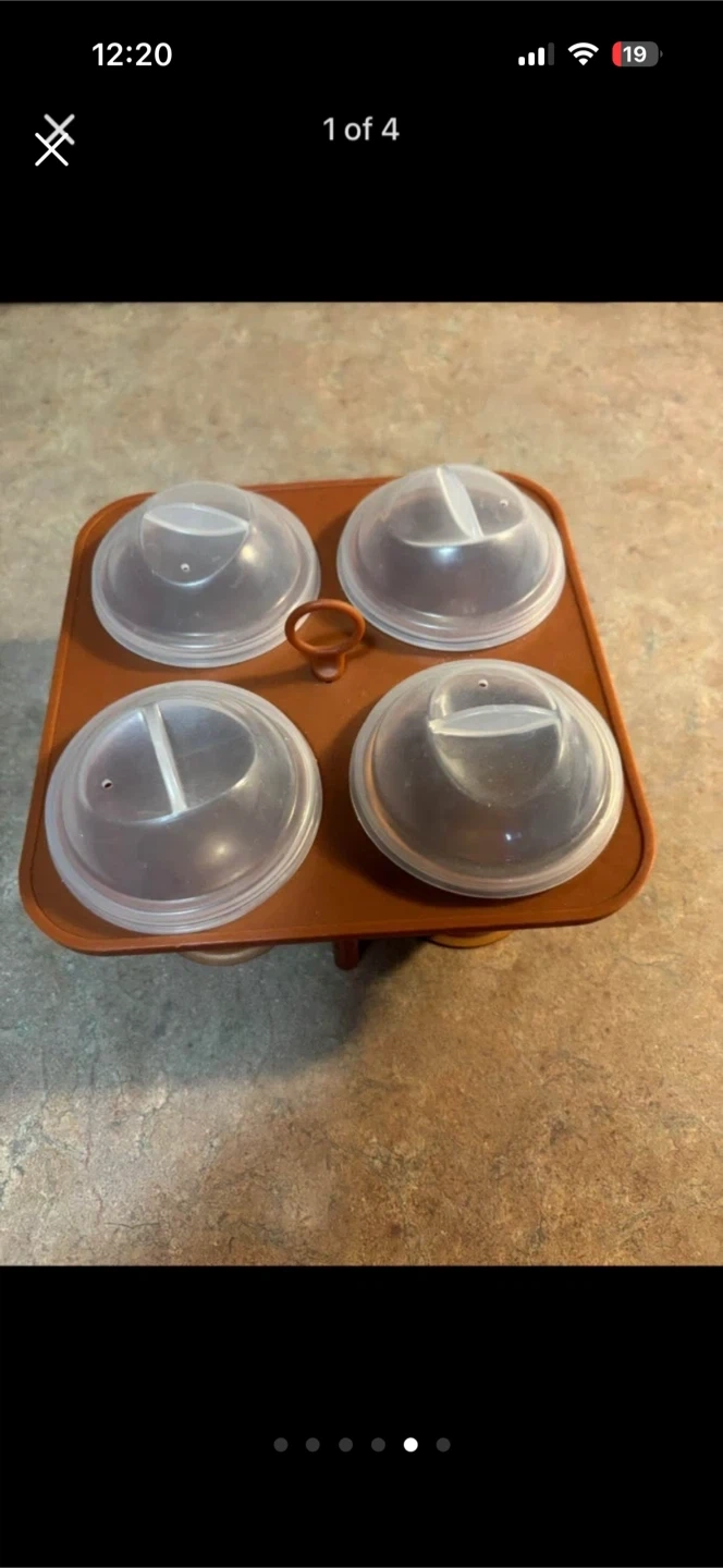 Set of 4 individual egg poachers with lids. Brown plastic base and clear plastic lids. This set is useful for making perfectly poached eggs on the stovetop. From smoke free pet free home . Pick up 551 Emerson street. Coquitlam. Cash only . No delivery. No e-transfer