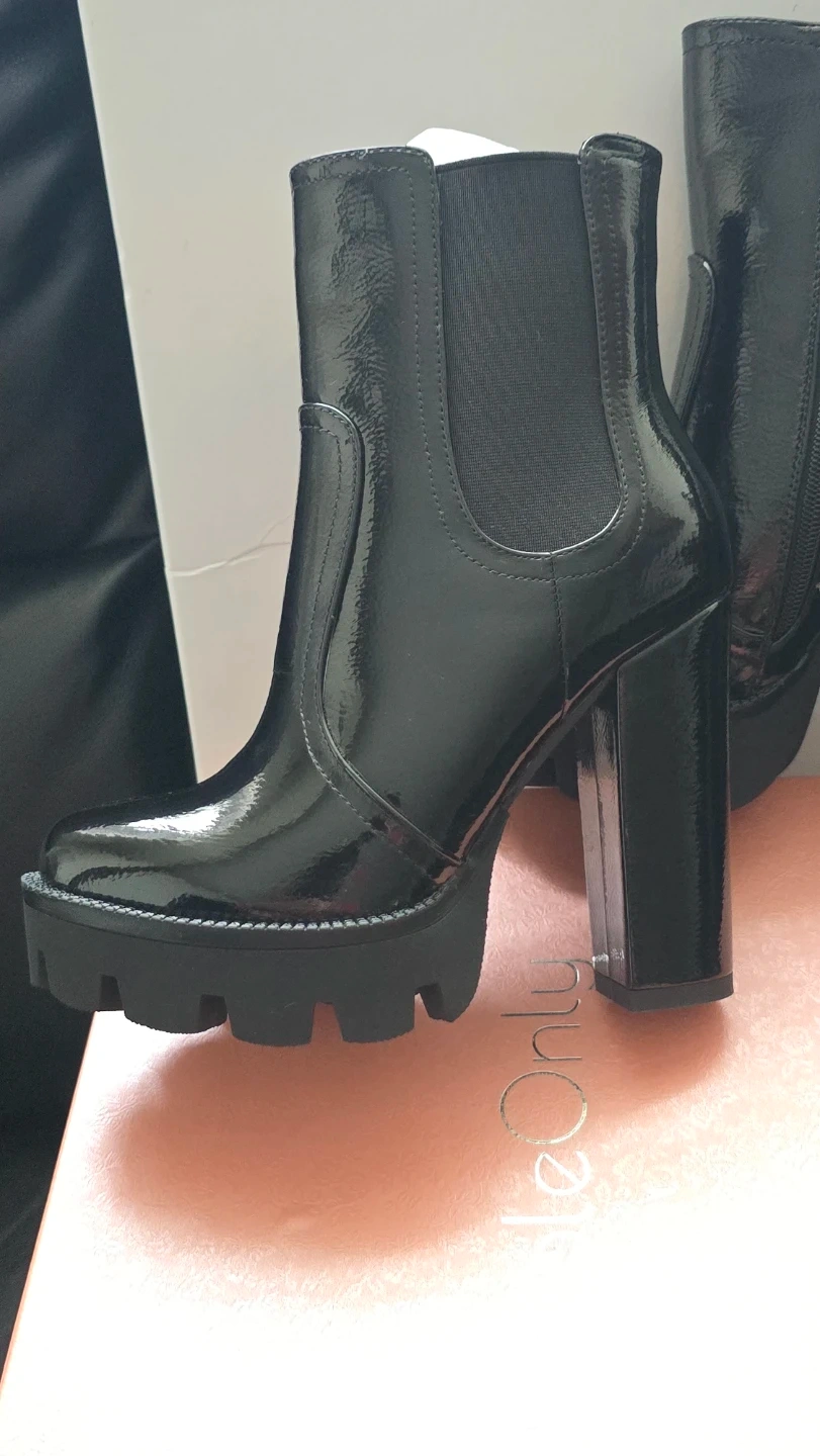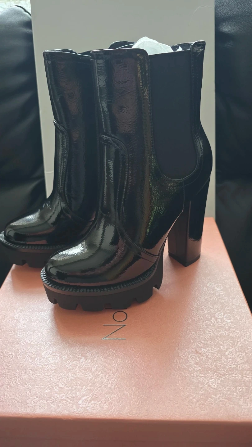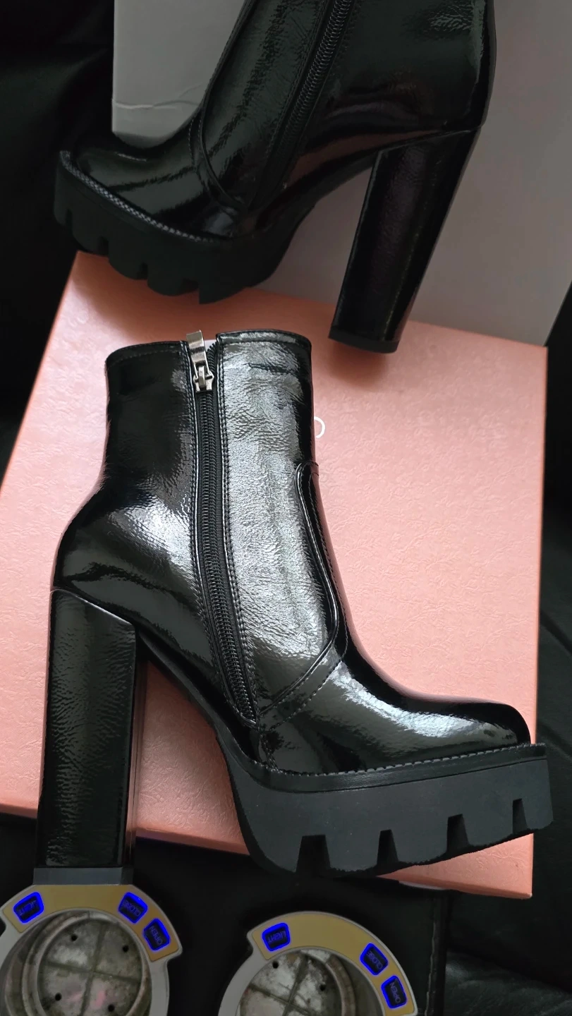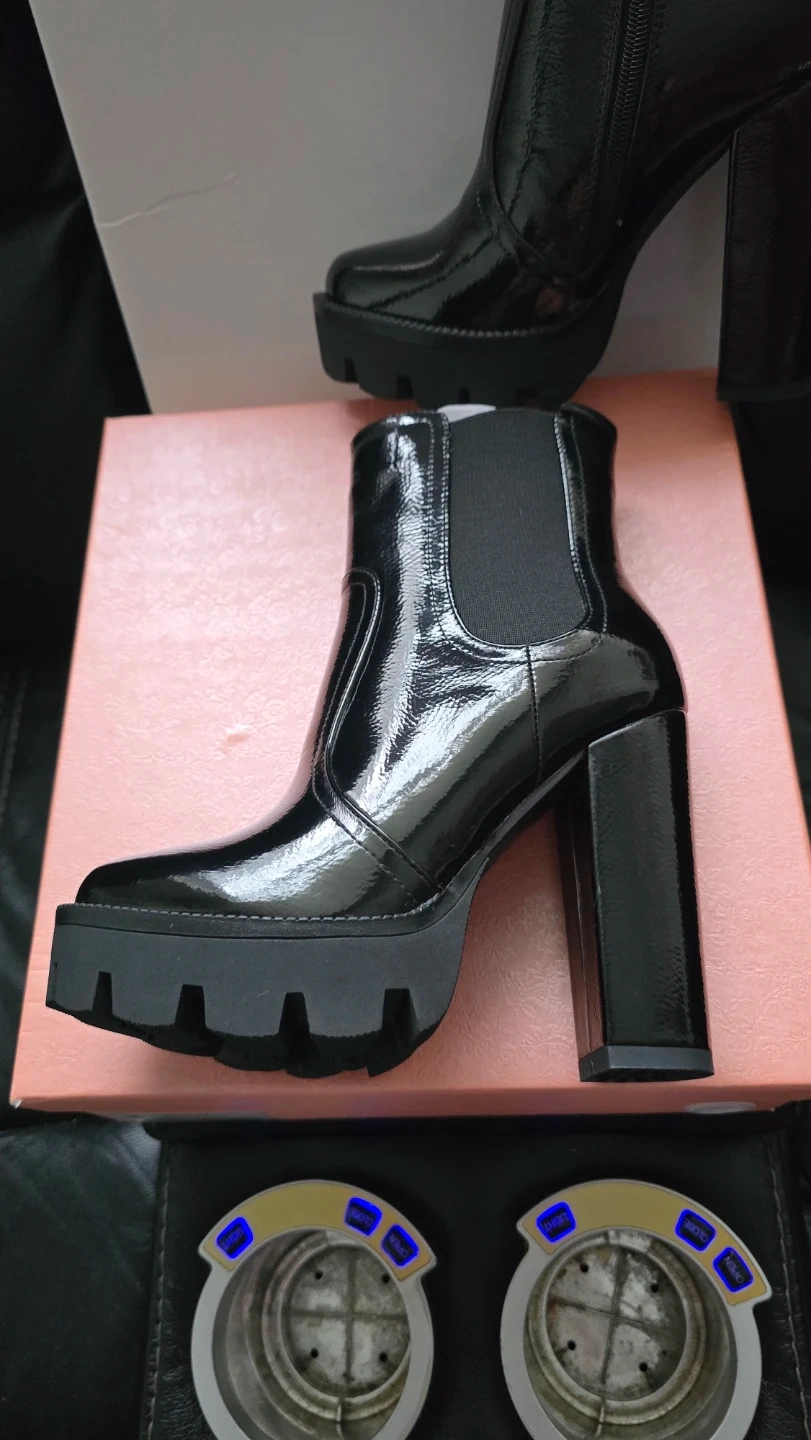 Brand new Women's High Glossy Black Chunky Boots