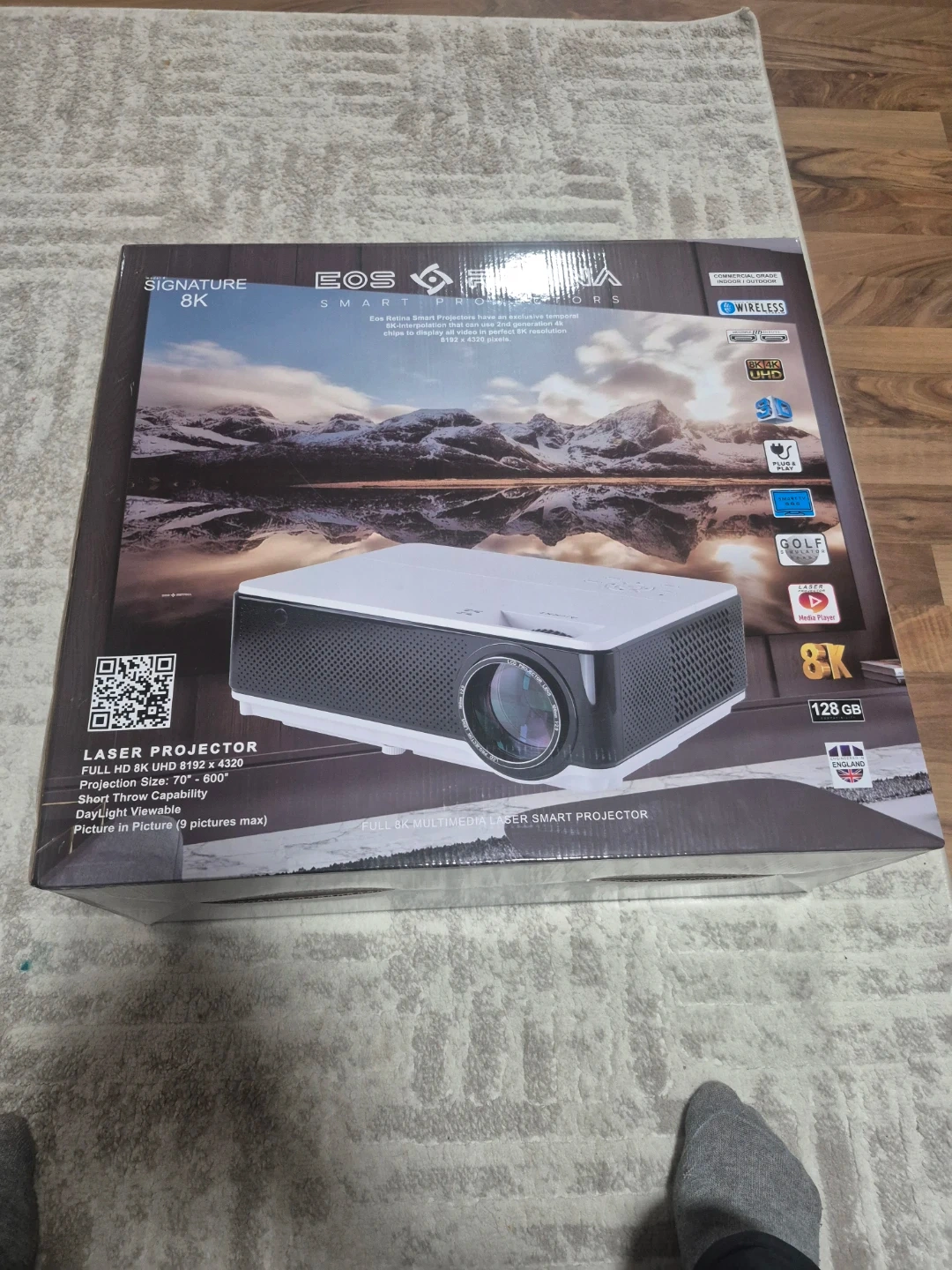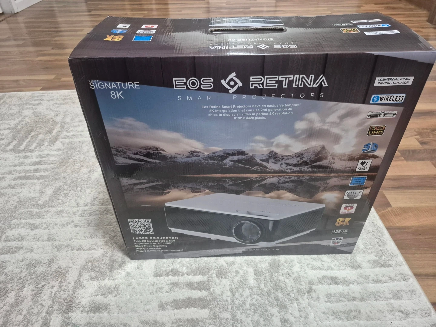 New EOS Retina Signature 8K Smart Projector and Electric Tech i-Motorized 100-8K Projection Screen. Projector is 8K UHD, 8192 x 4320 resolution, laser smart projector. Has 70-600 inch projection size, 128 GB storage. Wireless, commercial grade for indoor/outdoor use. Screen is motorized UHDTV, 100-inch, 8K compatible. Both still in boxes.