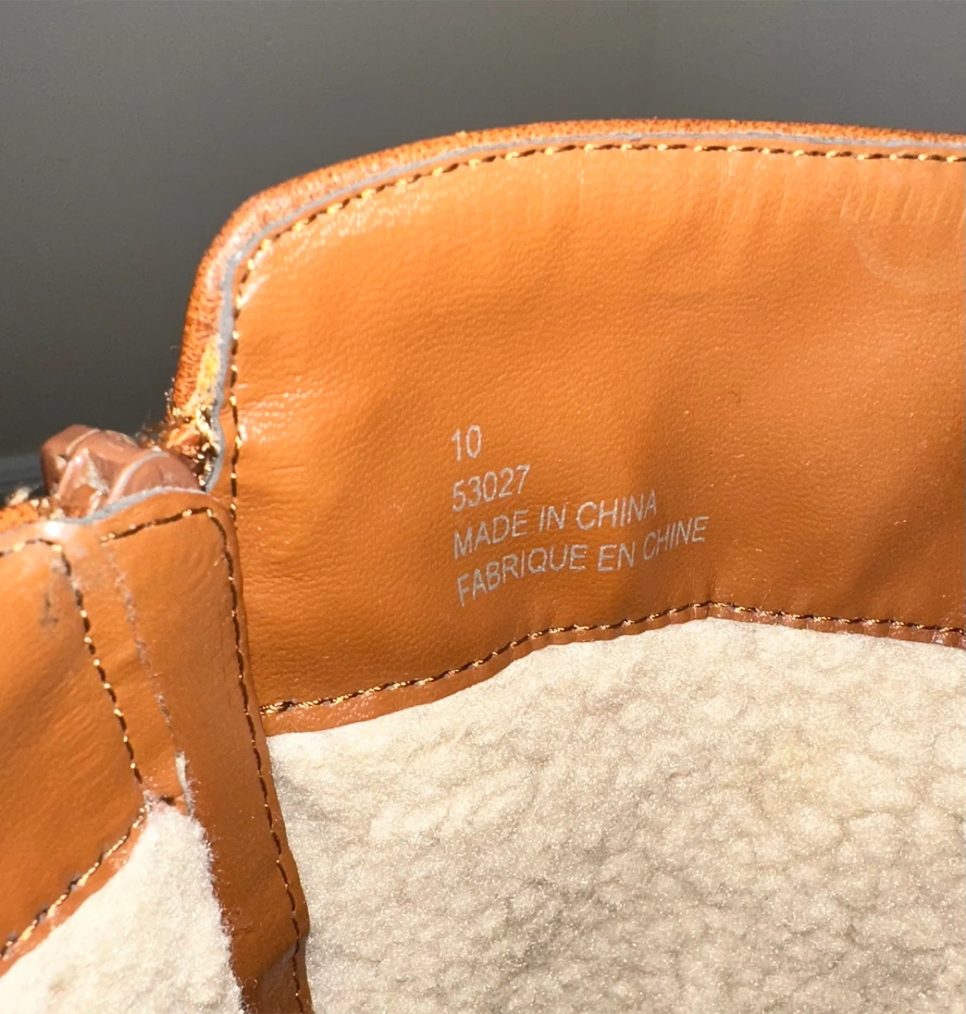 Comfortable faux leather knee-high boots in a warm brown colour. These boots are lined with a soft, fluffy material for extra warmth. They feature a convenient side zipper and buckle strap detail. Size 10.