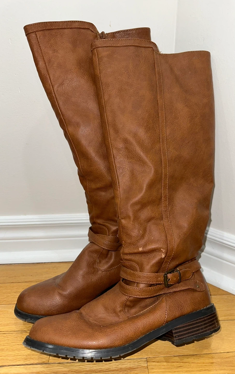 Brown Faux Leather Knee-High Boots - Size 10 π₯