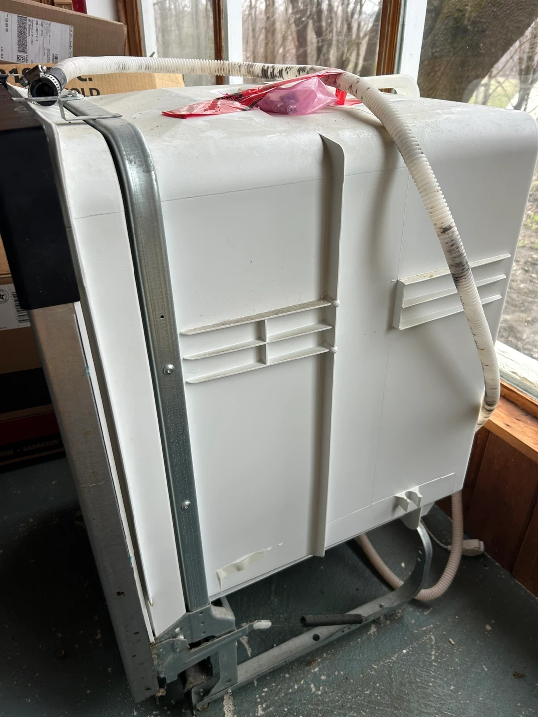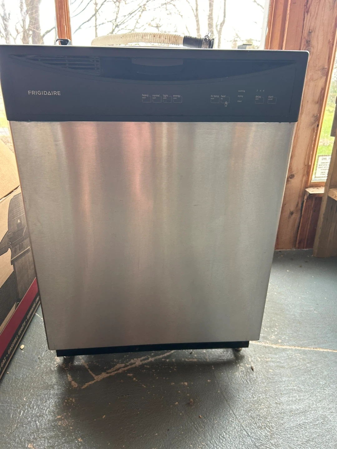 This is a Frigidaire dishwasher. It's a standard size with a stainless steel front. It has multiple wash cycle options.