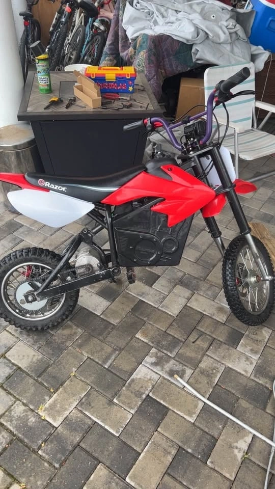 Razor mx500 with 72v Vevor motor controller kit. Has all new plastics and a headlight with high beam. Features a 3-inch lift suspension with a hydraulic rear shock. Currently goes 42 mph, but includes parts to reach 55 mph. Need gone.