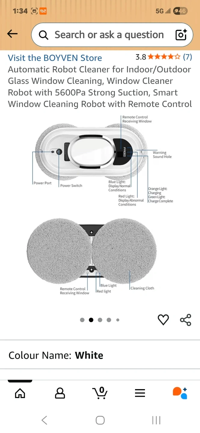 This automatic window cleaning robot is designed for indoor and outdoor use. It features automatic water spray, 5600PA suction power, and intelligent planning. Control it manually or automatically with the included remote. It's great for cleaning high windows!