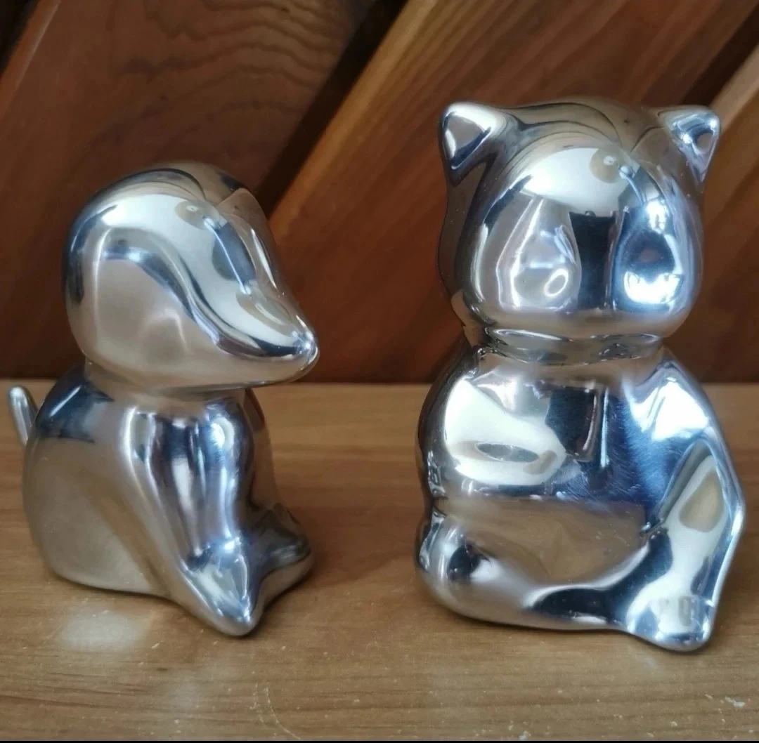 Pair of Hoselton Canada Solid Aluminum Sculptures. Beautiful signed art pieces, in excellent condition, cat is about 3 inch tall, dog is about 2.5.