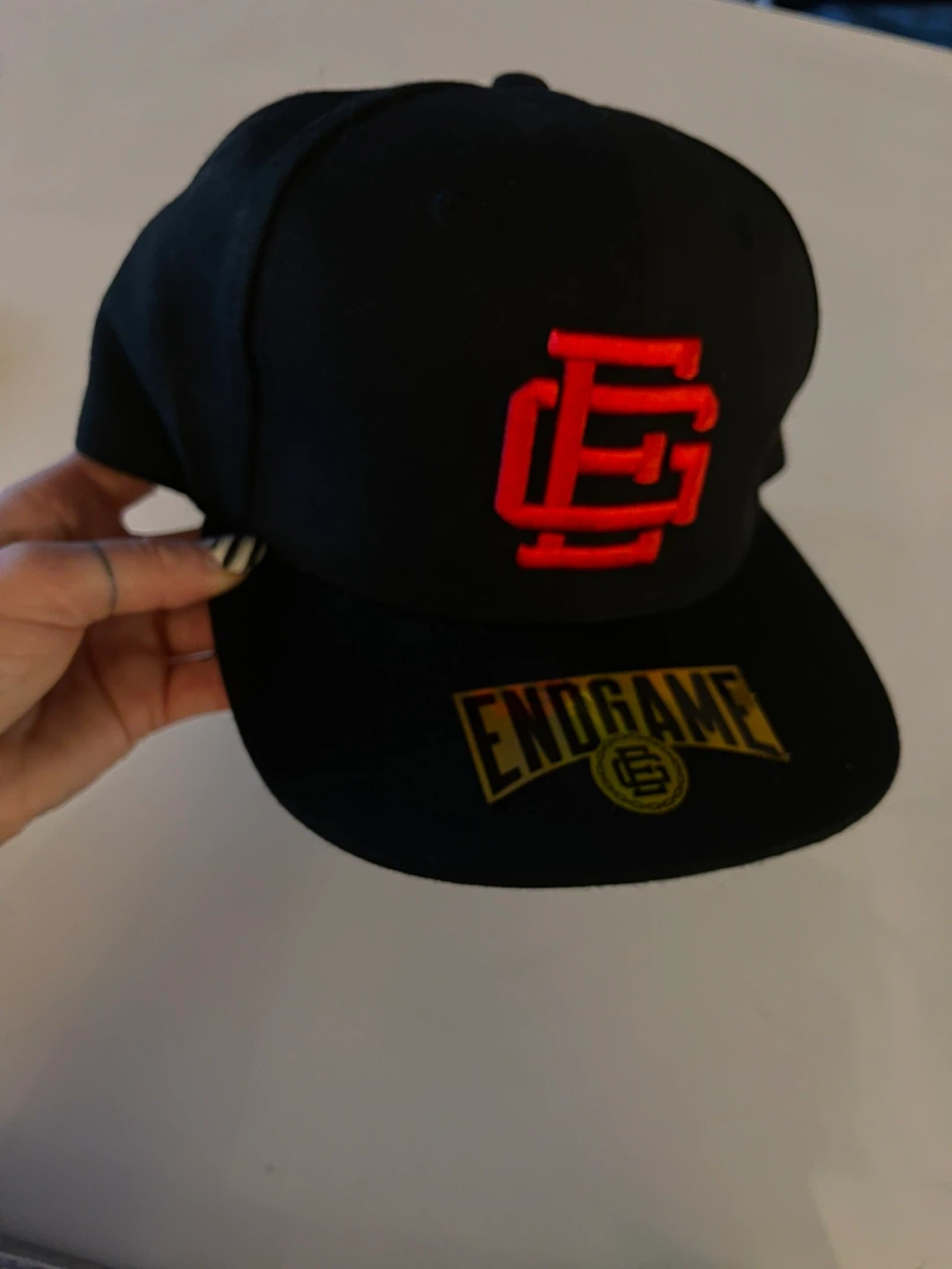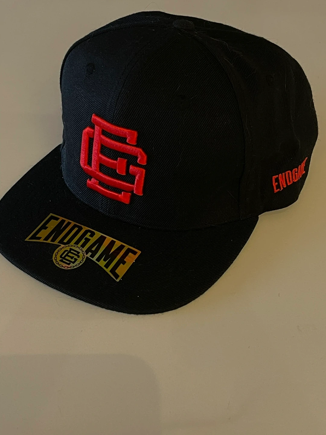 Selling a brand new black snapback hat from Endgame! It's new and features a red embroidered logo on the front and side. A stylish addition to any hat collection