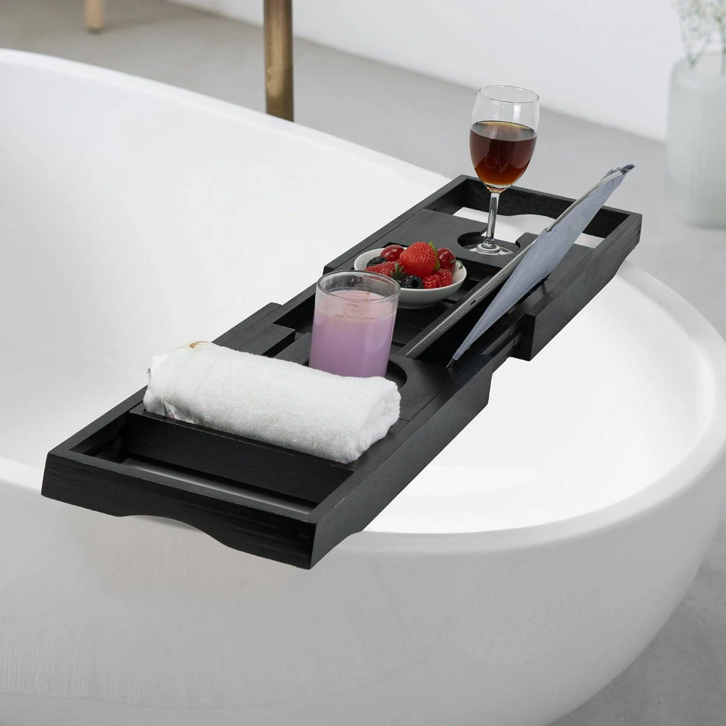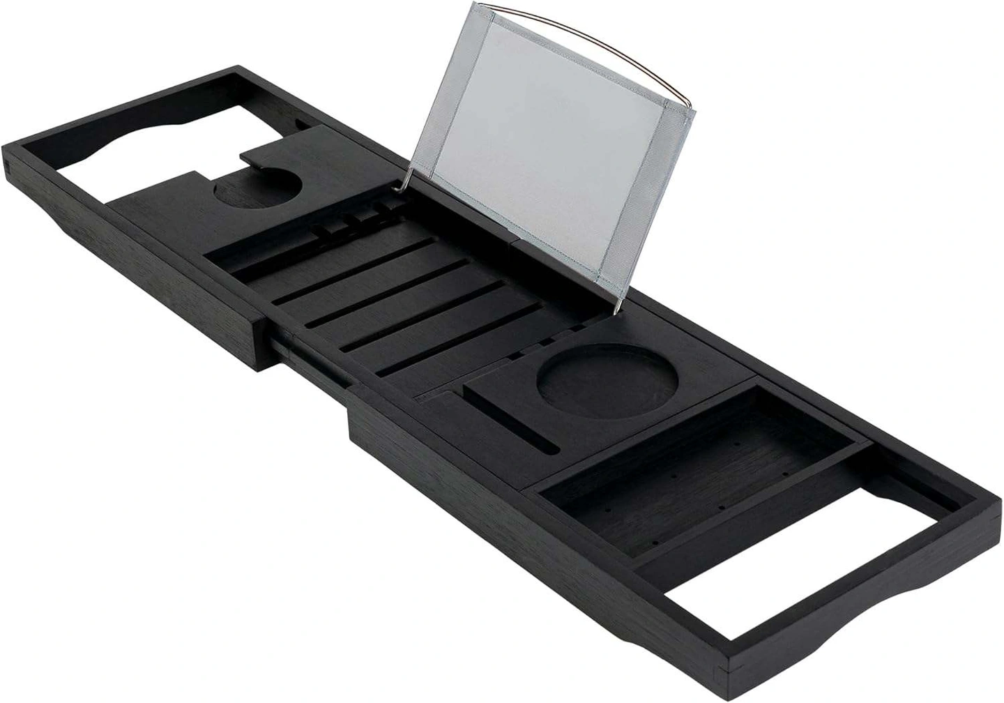Adjustable Bamboo Bathtub Tray Caddy - Black