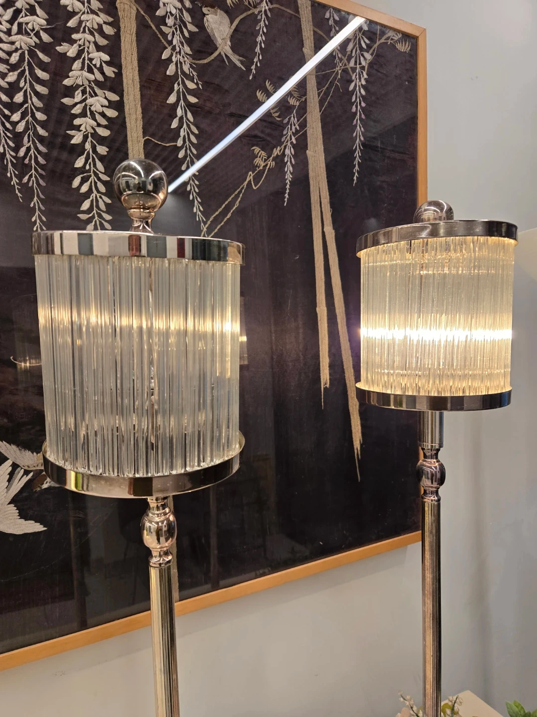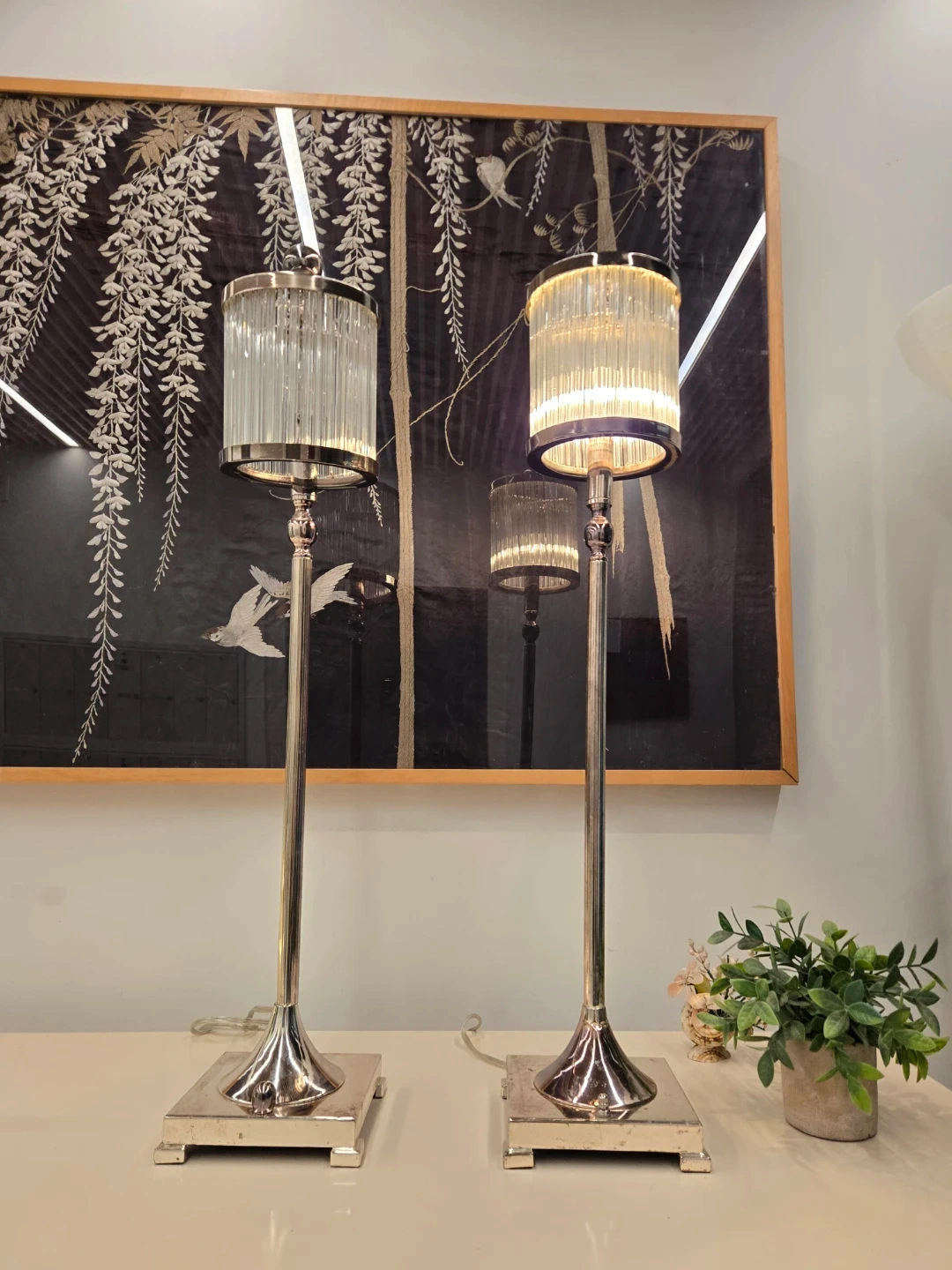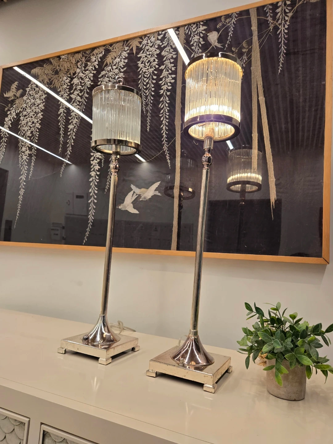 Pair Of Silver Table Lamps With Crystal Shades *Price For Both*