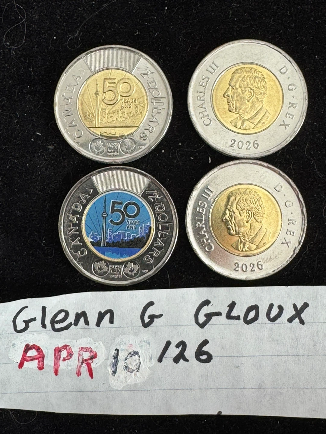 4 Canadian dollar coins commemorating 50 years, featuring King Charles III. One coin depicts a cityscape. These coins are dated 2026. Collection of two distinct Canadian dollar coins. SHIPPING REG MAIL $5 REG MAIL E-TRANSFER B4 SHIPPING, I CAN MEET IN EDMONTON