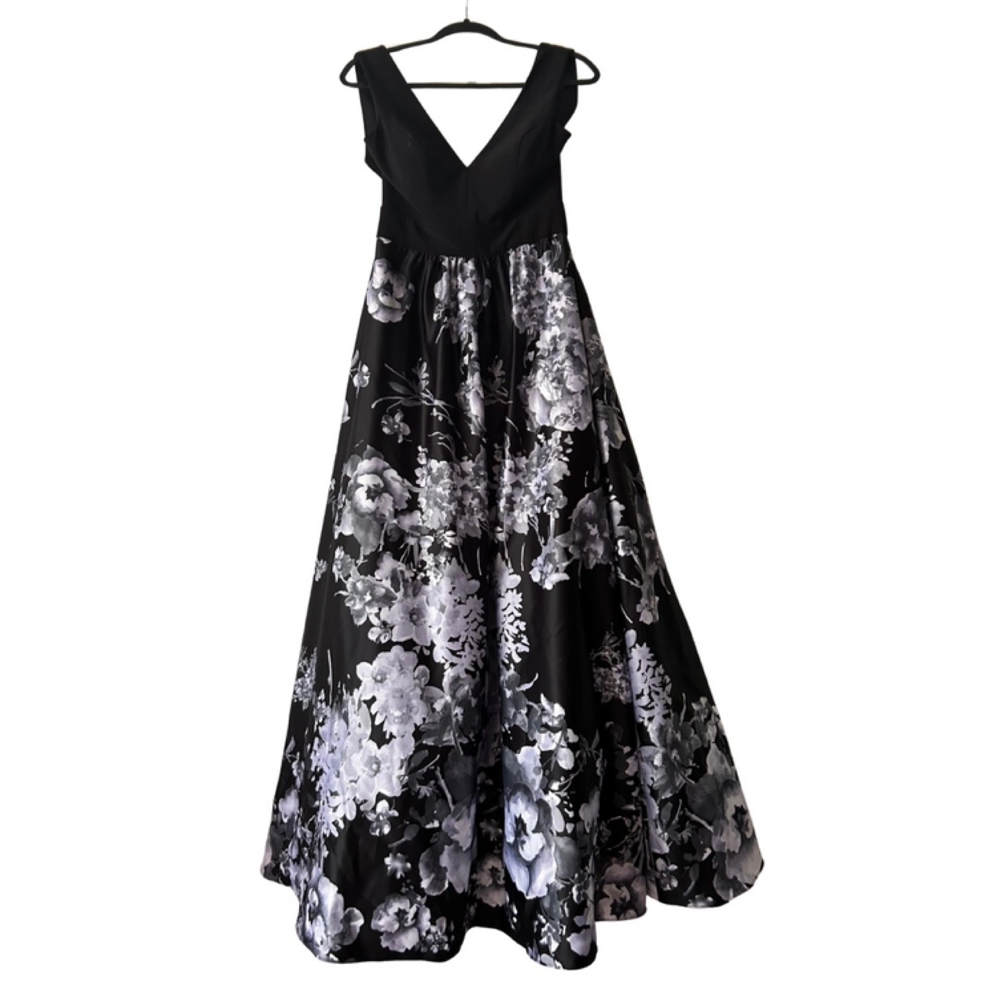 Selling a beautiful floral v-neck dress! It's black and white and in great condition. Perfect for a special occasion!