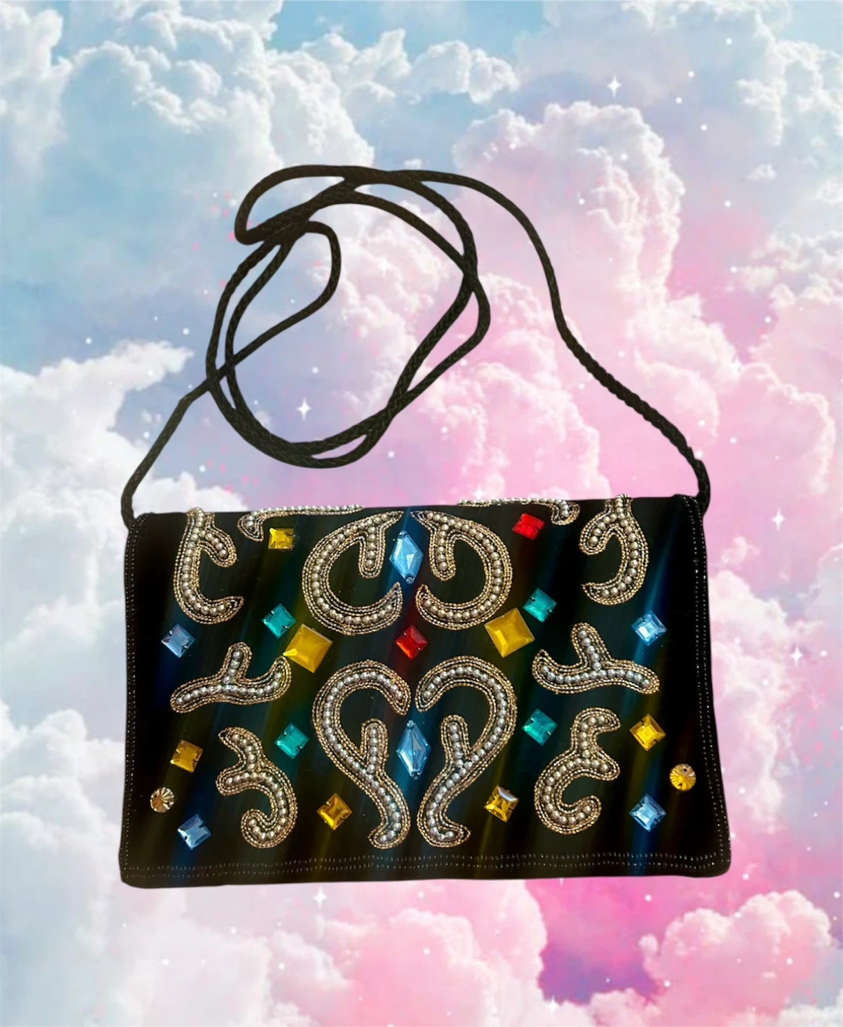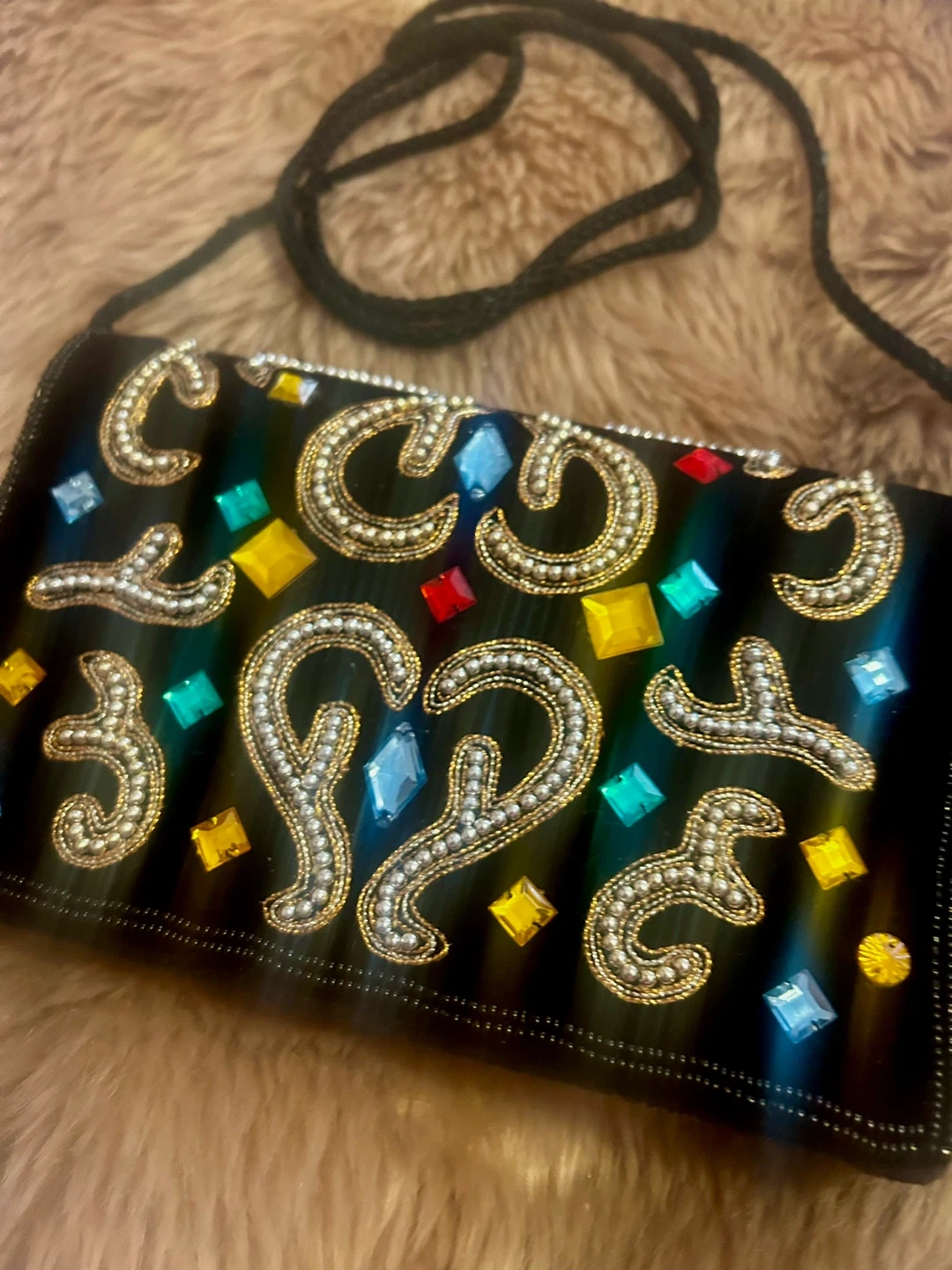 MARY FRANCES 90S VINTAGE BLACK VELVET BEADED GEM BAG