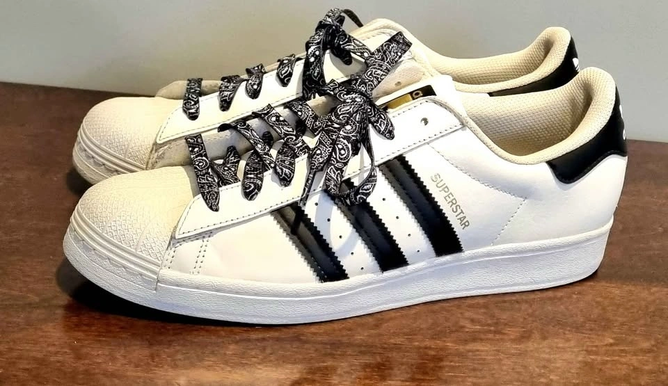 Adidas Superstar Sneakers White Black Bandana Laces Size 10 Men