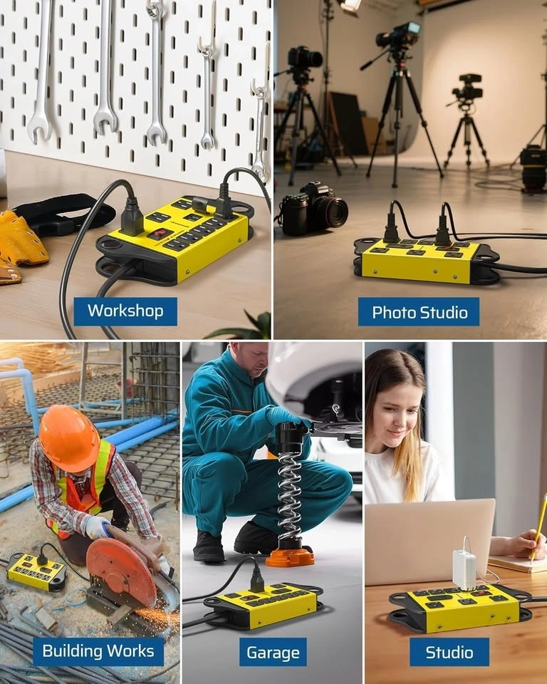 Garage Power Strip Wall Mount, Wide Space 8-Outlet