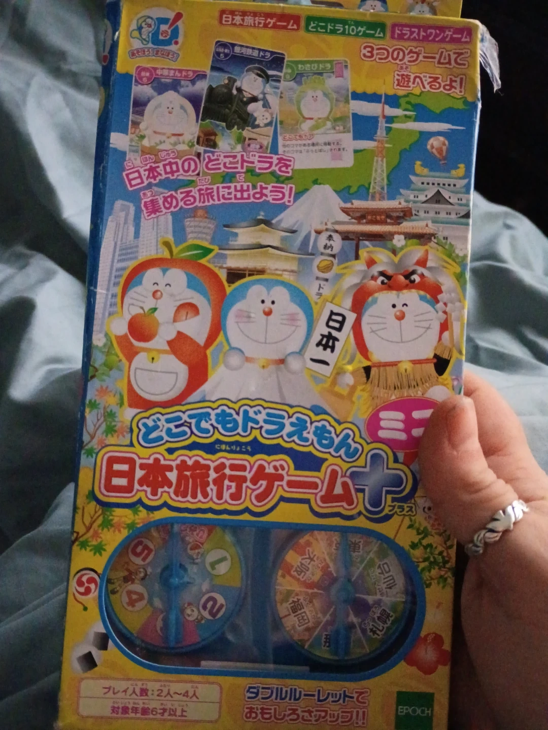 This is the Doraemon Japan Travel Game board game by Epoch. It features 3 different games and a double roulette for added fun. Designed for 2-4 players, it's recommended for ages 6 and up. Gather Doraemon characters from across Japan!