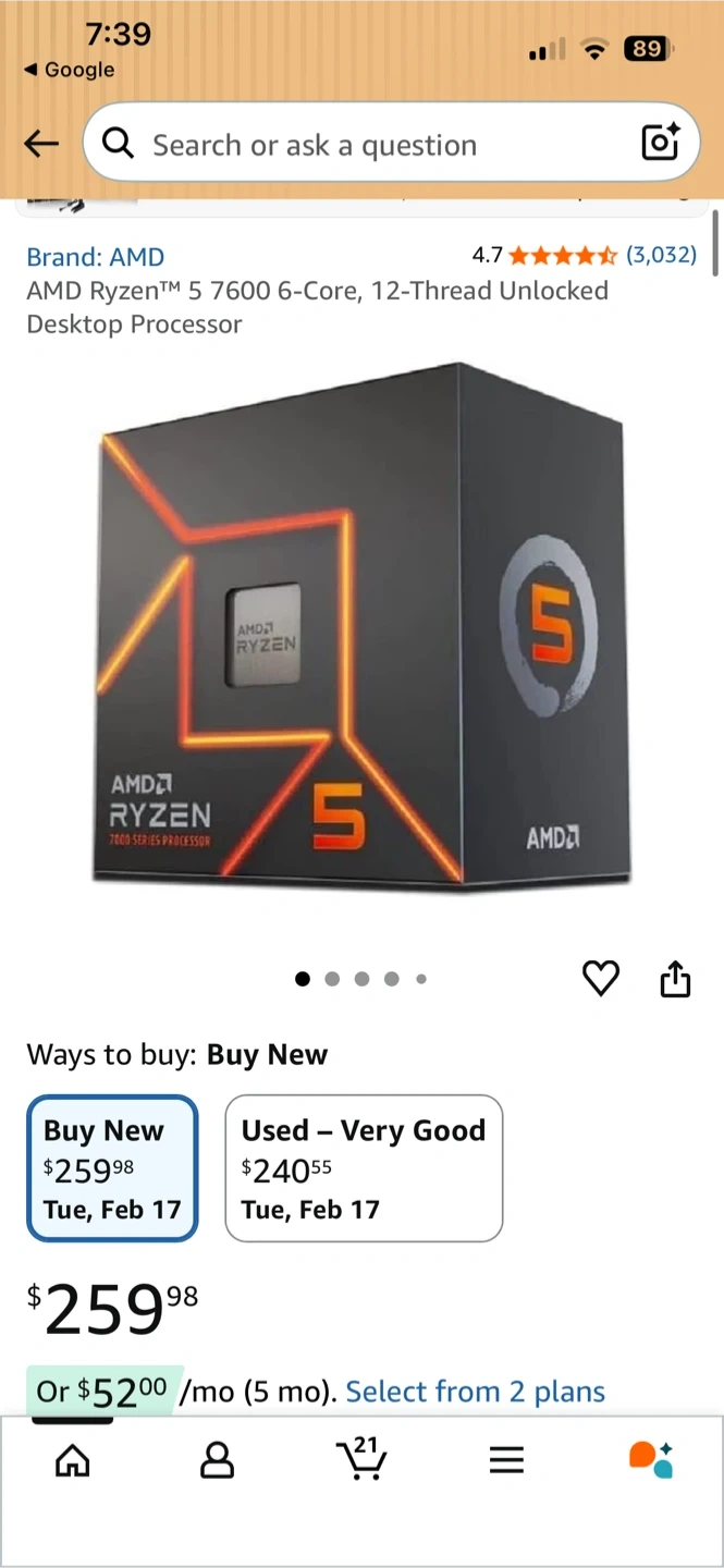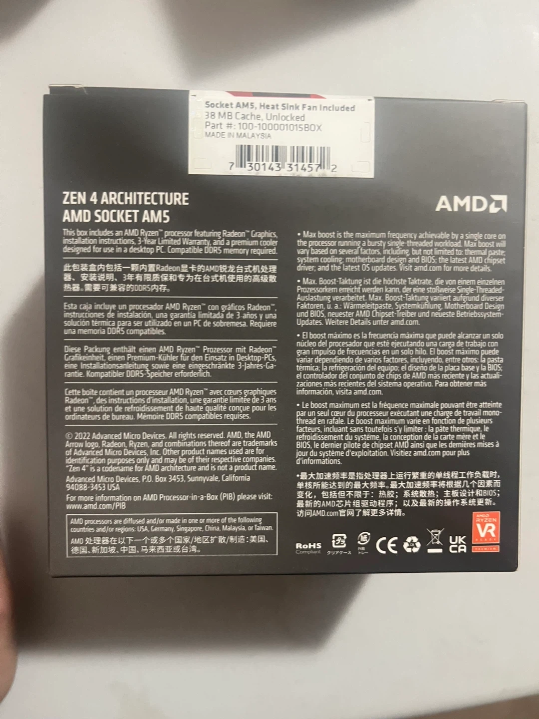 This AMD Ryzen 5 7600 processor features 6 cores and 12 threads. It has a 5.1 GHz max boost and 3.8 GHz base clock speed. Includes a heatsink and is designed for AM5 socket desktops.