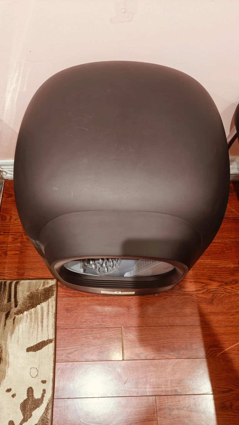 This is the Litter-Robot with an automatic, self-cleaning litter box. It has a sleek, modern design and helps keep your home tidy.