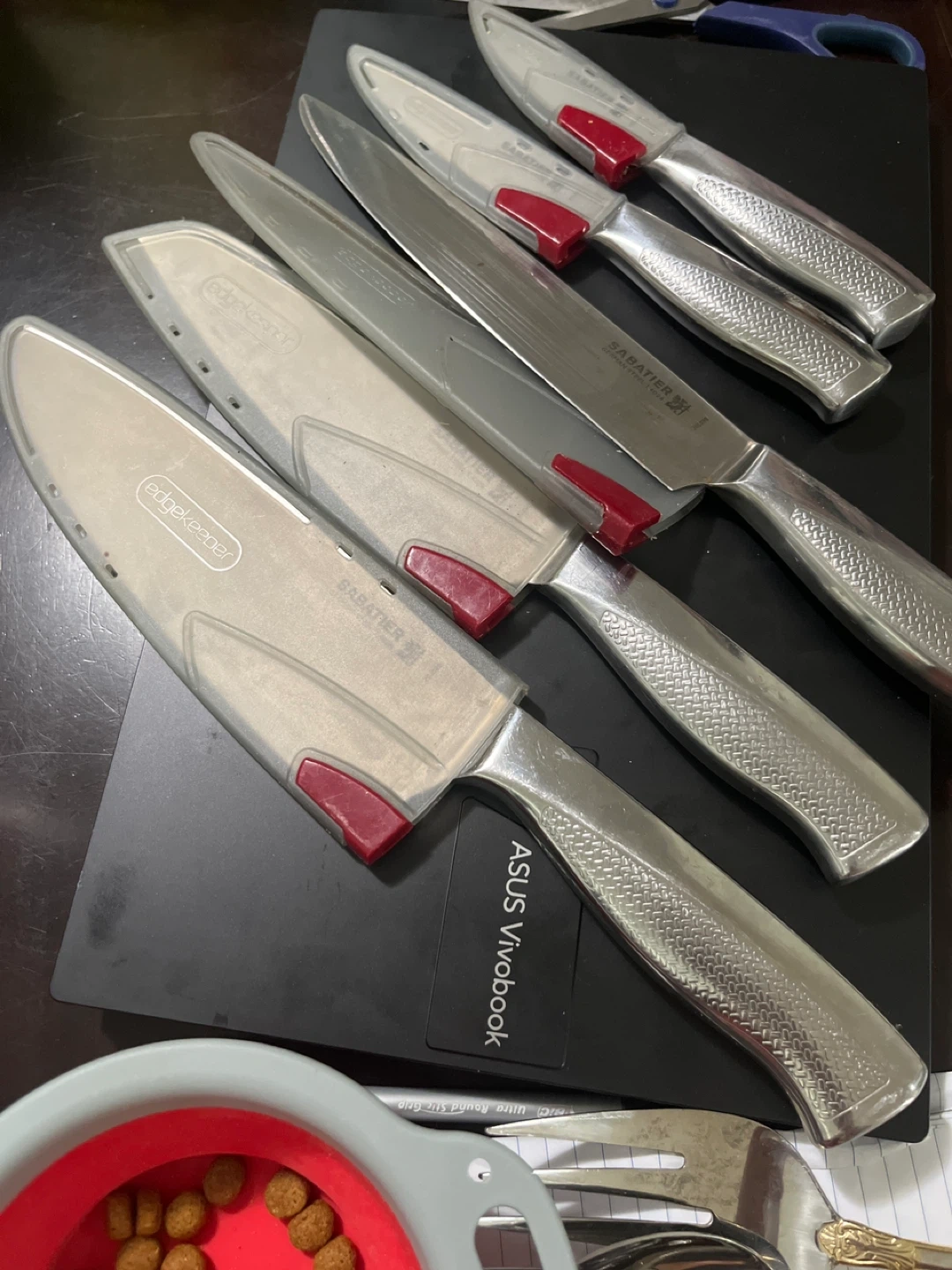 60Selling a Sabatier Edgekeeper knife set! These knives are in great shape and come with their protective sheaths. Perfect for any kitchen!