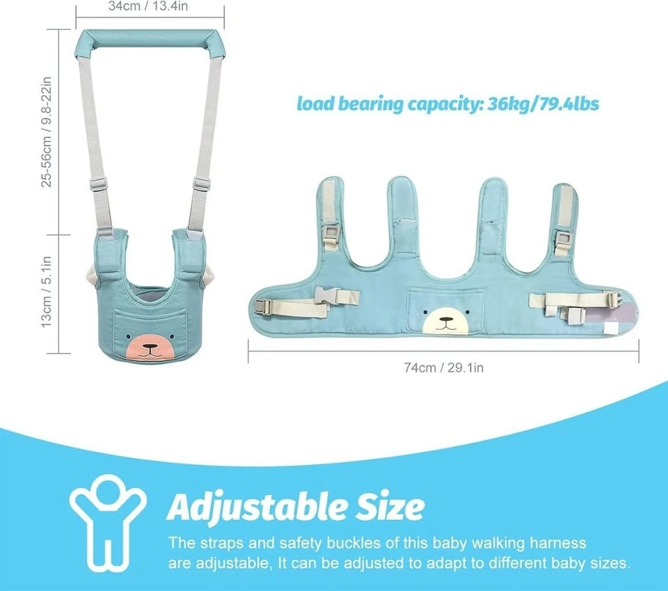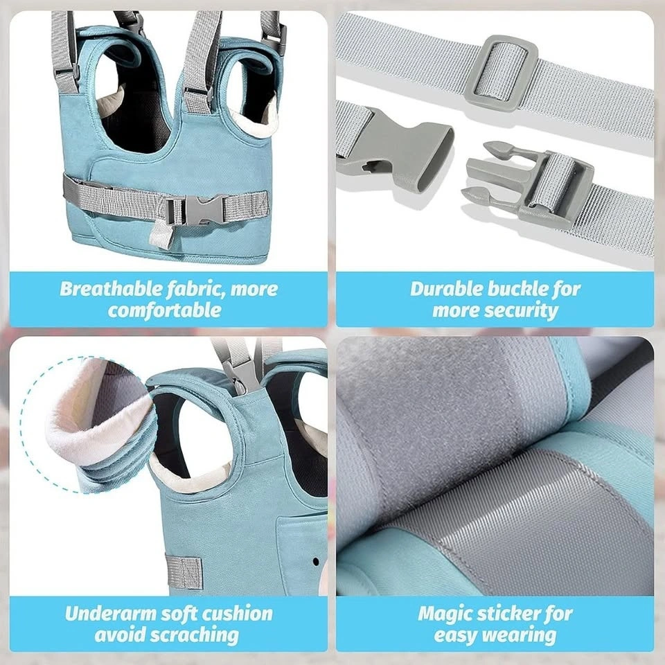 Soft wearable walking support harness designed to assist toddlers during early walking stages. Fabric support only. Not a wheeled device. Parent-guided use. Comfortable Cotton Material. Made from breathable cotton with mesh panels for airflow and all-season comfort. Soft, lightweight, and gentle on sensitive skin. Features: Adjustable shoulder & waist straps, Adjustable support handle, Soft breathable cotton, Comfortable underarm padding, Lightweight & compact, Suitable for 8–48 months, Max weight 36 kg. Helps provide gentle balance support while your child practices first steps. Let me know if you're interested!