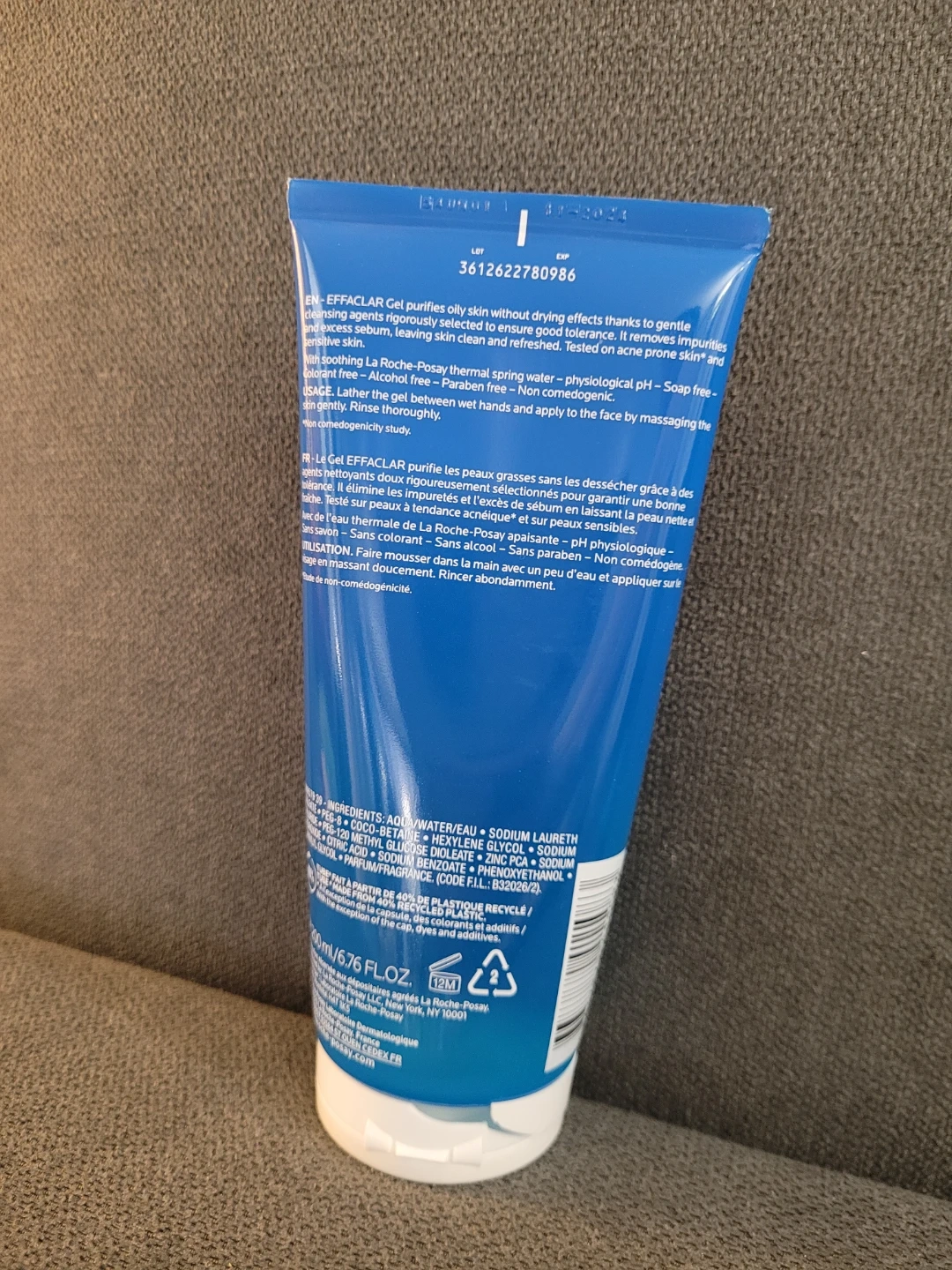 La Roche-Posay Effaclar Purifying Foaming Gel Cleanser for oily, acne-prone skin. It's soap-free, paraben-free, and non-comedogenic. This cleanser purifies skin without drying, leaving it clean and refreshed. It contains 200ml / 6.76 fl. oz.