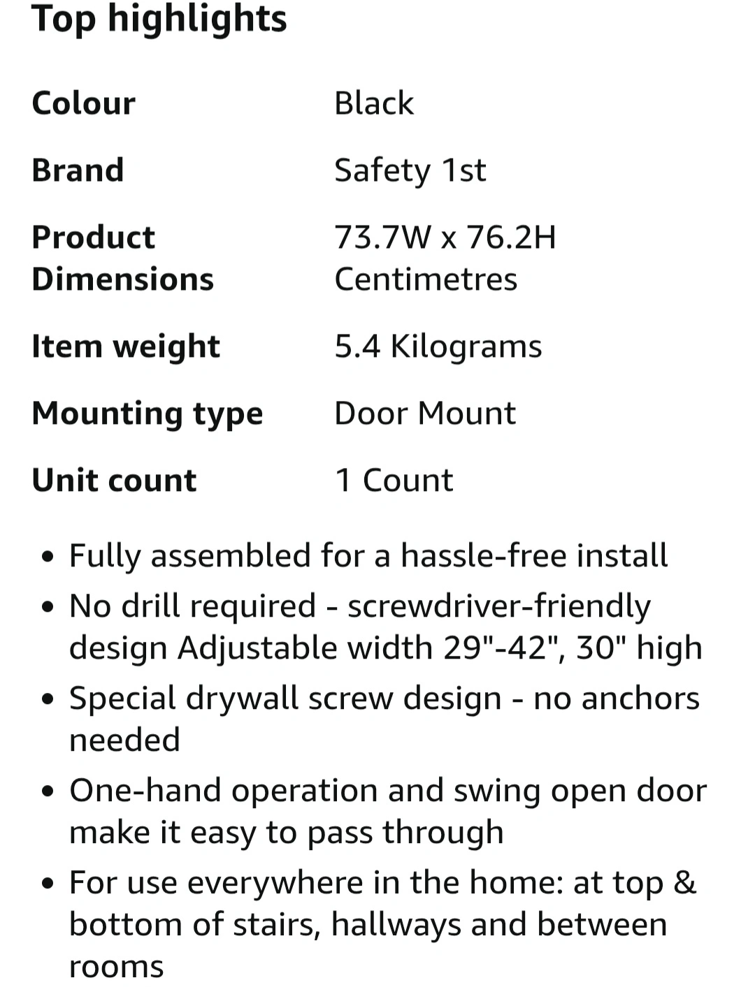 Selling a Safety 1st baby gate in good condition. It's perfect for keeping your little one safe and secure! It's easy to install and use, so you can have peace of mind knowing your child is protected.