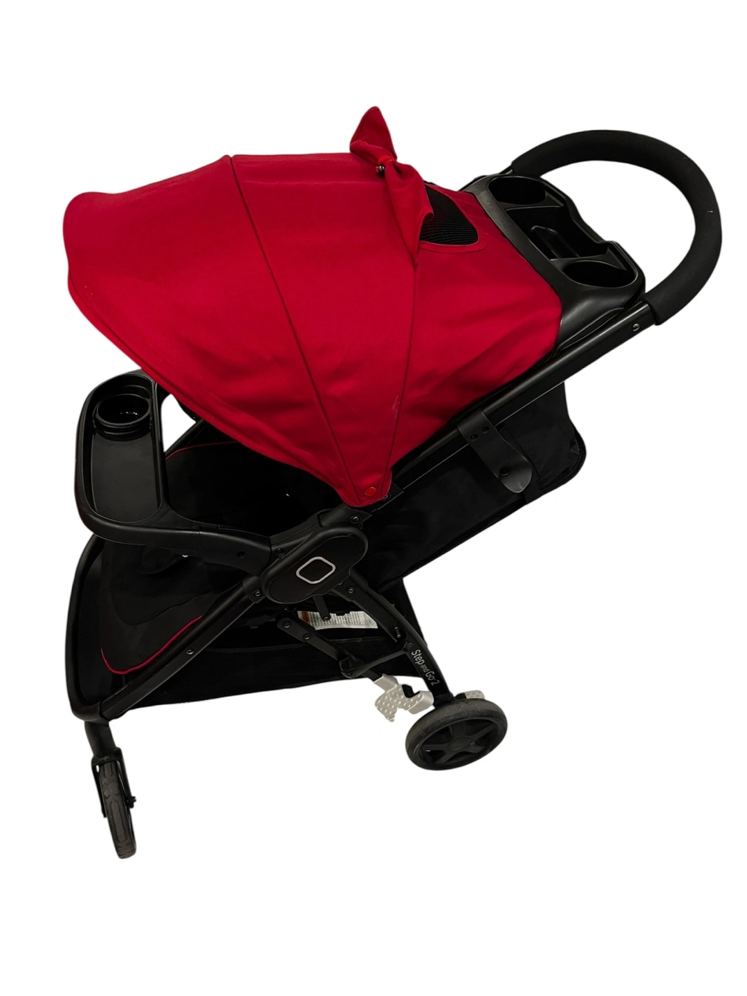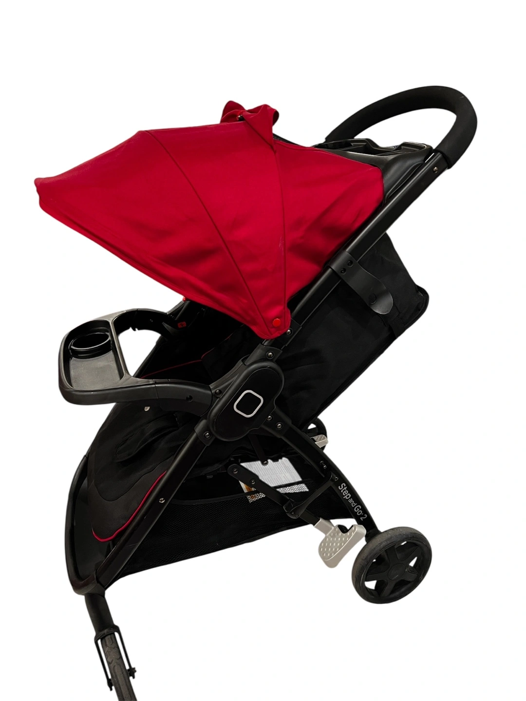 Selling a Safety 1st Step and Go stroller in red and black! It's in great shape and ready for your little one. This stroller is super convenient for parents on the go! Bought for indoor use, barely go outdoors Need to be gone, no more room for it.