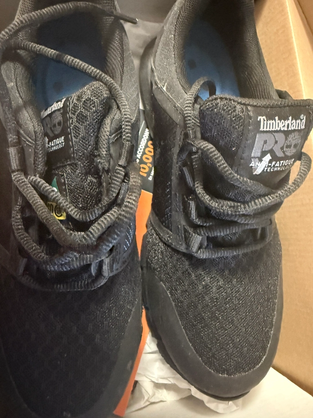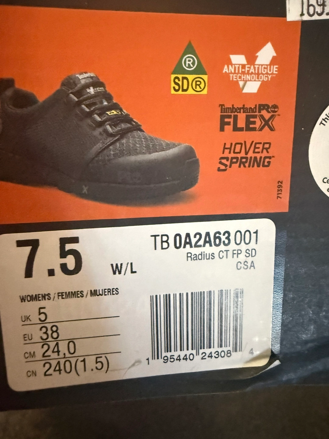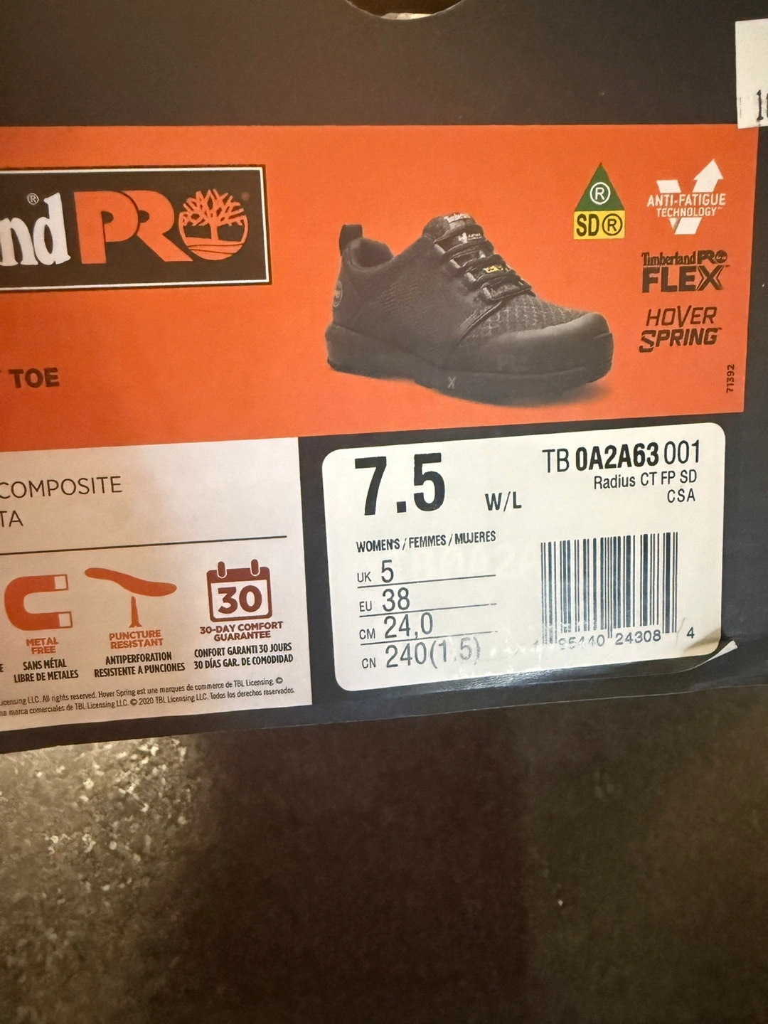 69Women's black safety shoes. Anti-fatigue technology. Composite toe. Size 7.5. New in box.