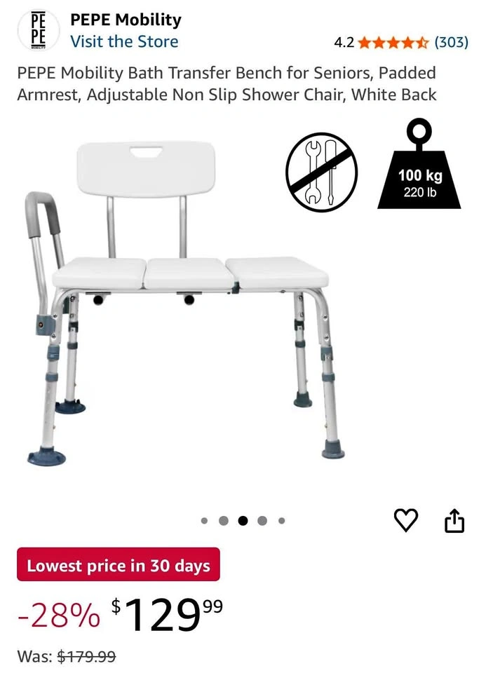 65Brand new bathtub transfer bench with padded armrest was purchased for family member, but they already had one provided for them so no longer needed brand new in the box never used