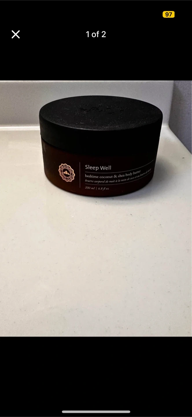 Selling a Sleep Well bedtime coconut & shea butter body butter! It comes in a 200 ml (6.8 fl oz) container. Used it once