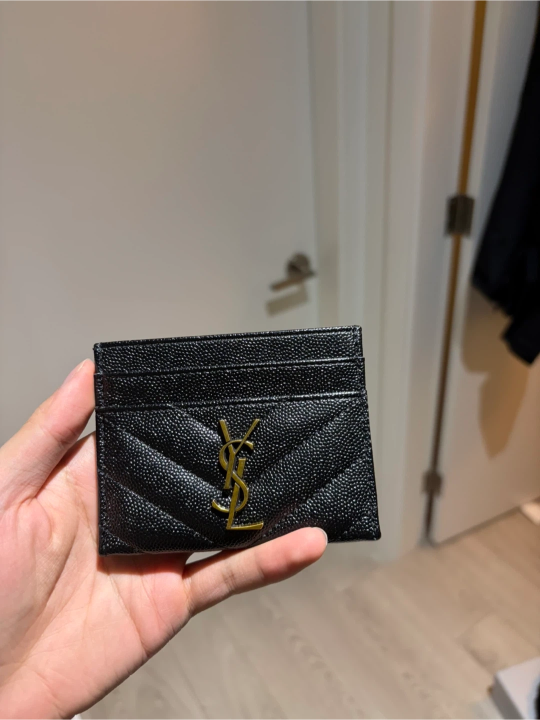 10Selling a gently used Saint Laurent card holder in black. It's in great condition and perfect for carrying your essential cards. The iconic YSL logo adds a touch of luxury to this sleek accessory