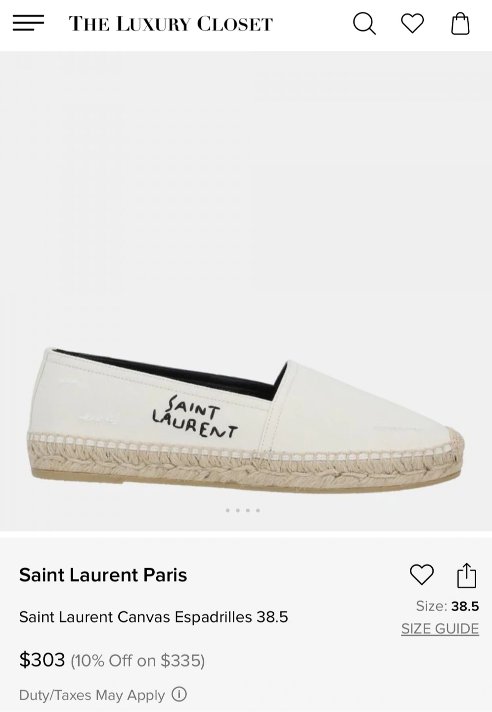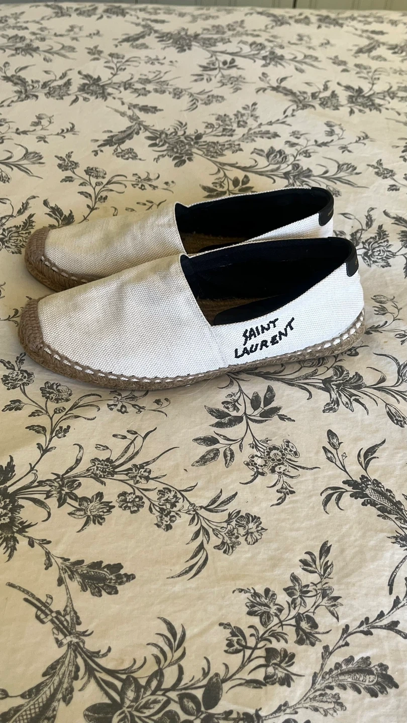 Selling a pair of Saint Laurent espadrilles. They are a size 38.5 and feature the Saint Laurent logo on the side and back. These shoes are perfect for a casual, summery look!