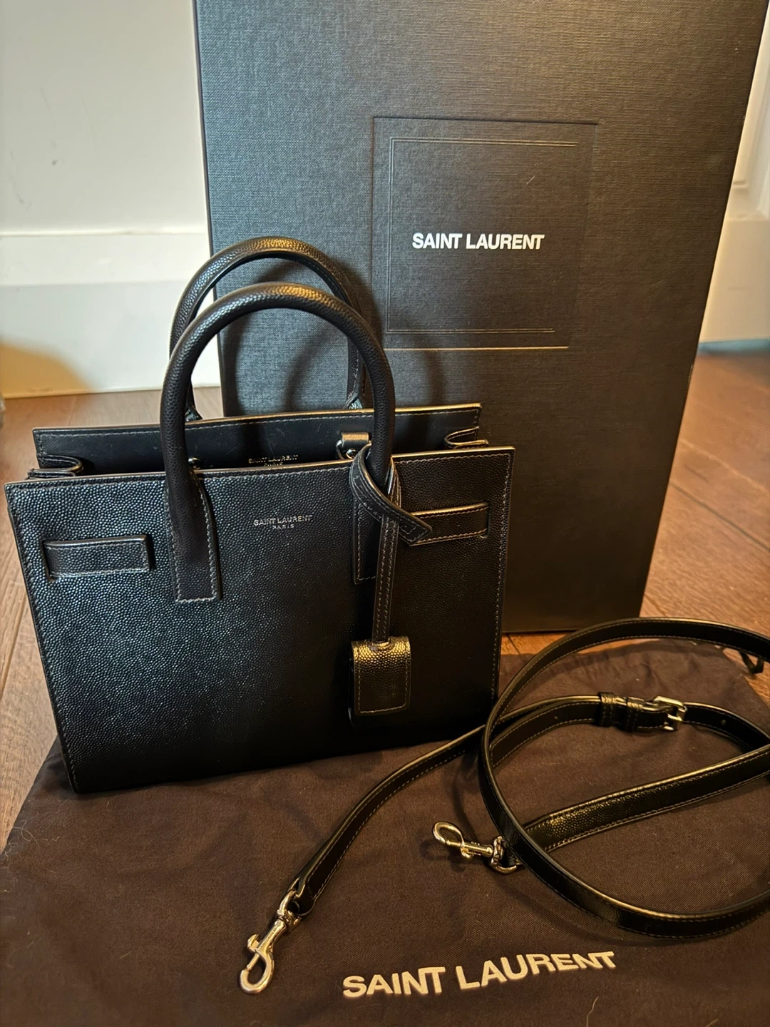 250Selling a Saint Laurent Nano Sac De Jour in black! It's in great condition and comes with its original box and dust bag. Perfect for carrying your essentials in style
