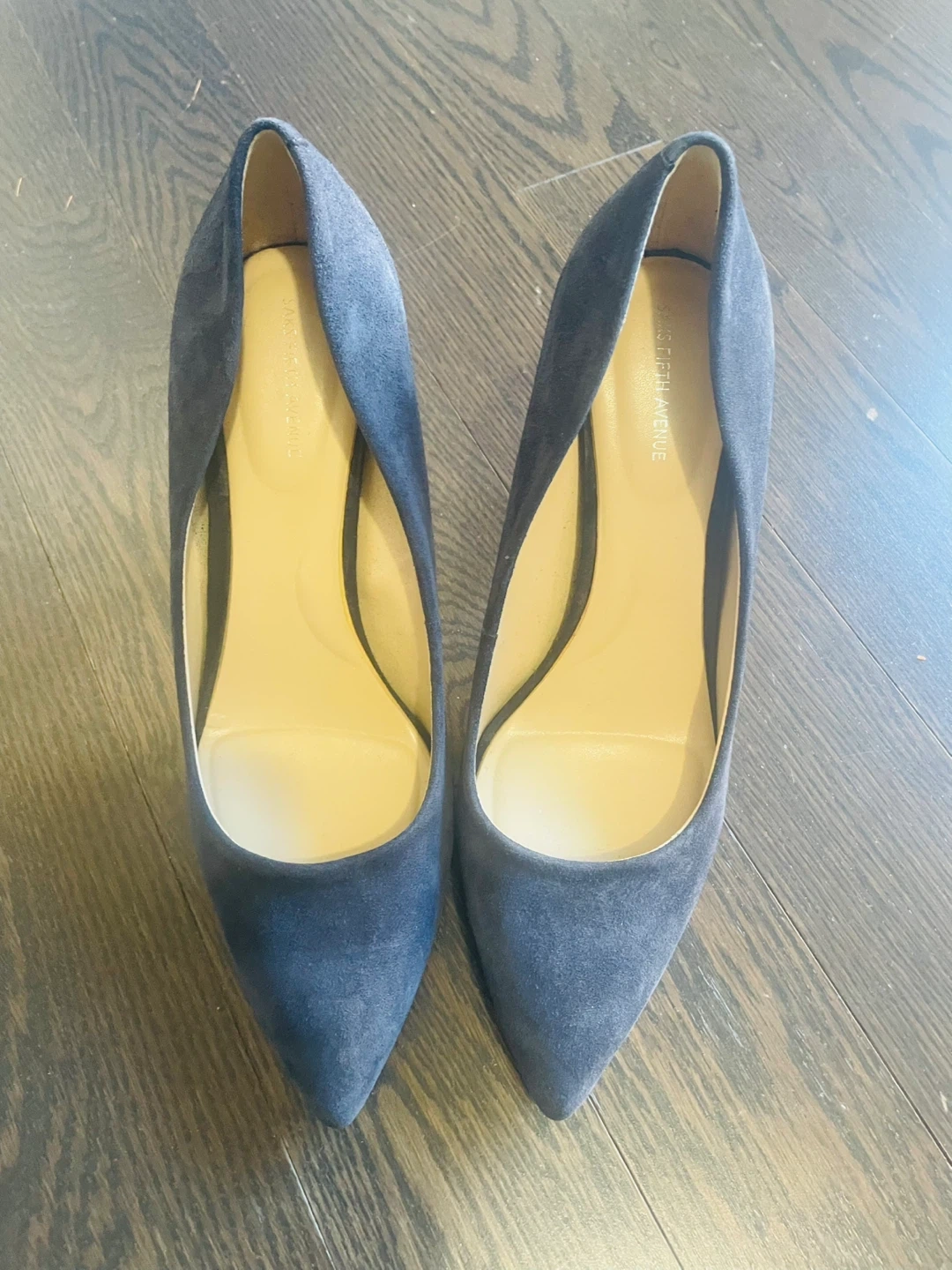 Selling a pair of Saks Fifth Avenue heels in a beautiful suede material. They are a size 7.5 and in great condition. Perfect for dressing up any outfit!
