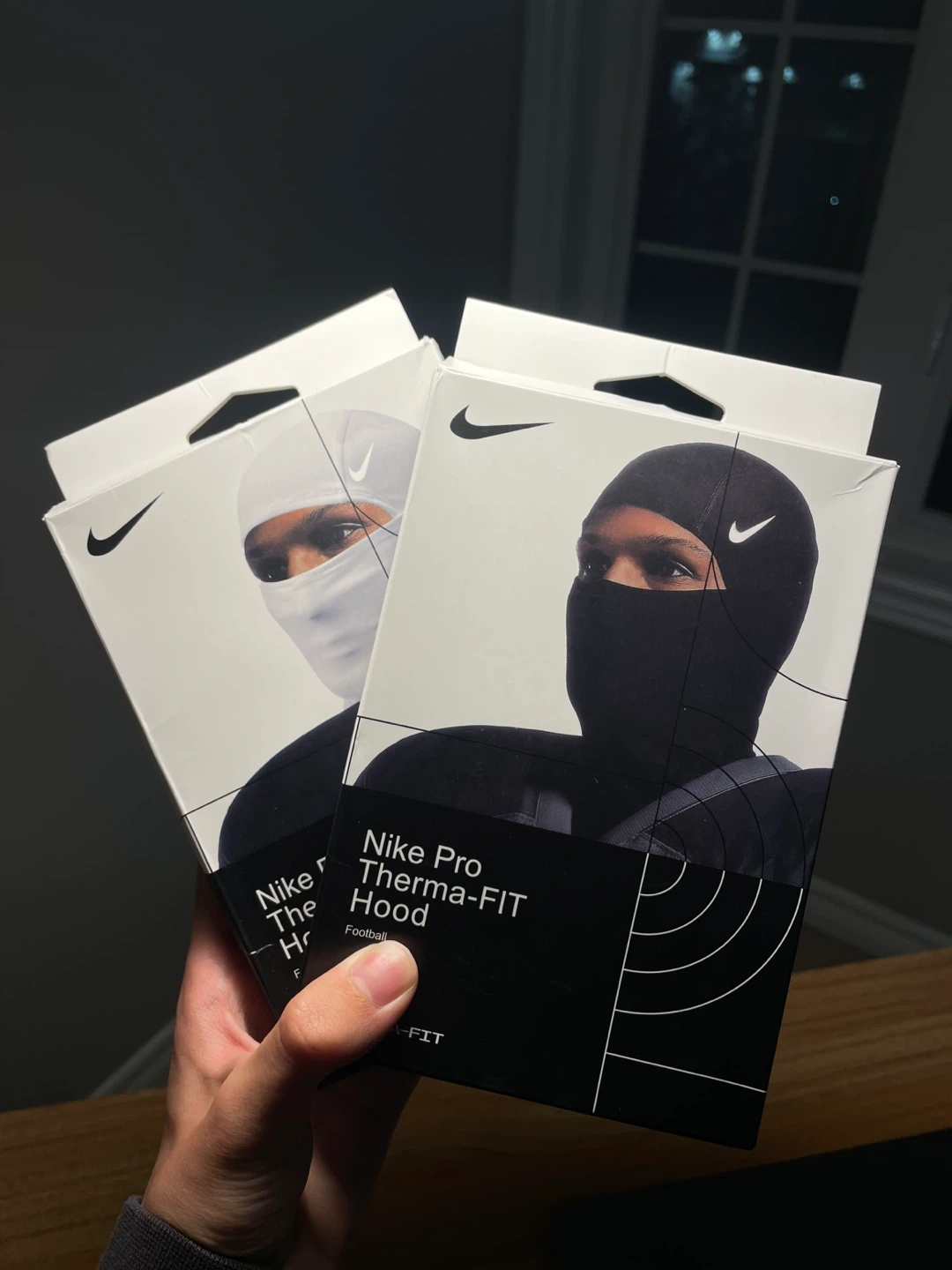 Brand new White and black Lowest price In market It’s one sale DM me before it sells out I'm selling a brand new Nike Pro Therma-FIT Hood in black. It's designed for football and features Nike Therma-FIT technology to help manage your body heat. The hood is a flat seams hood construction for zero distraction. It was originally bought 2 for 60$ and includes the original box