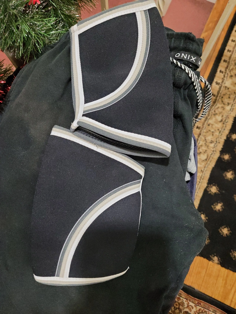New neoprene elbow sleeves pair, never worn due to it being more medium to small the large/ xl. Black, grey and white in colour, great quality, worth more online.