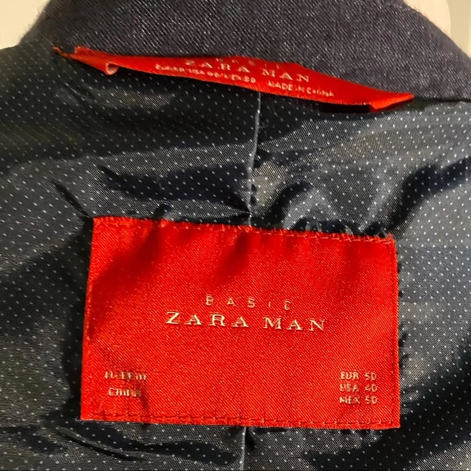 65Size 50 Slim fitted navy blue notch lapel blazer by Zara in excellent condition. Worn just once.