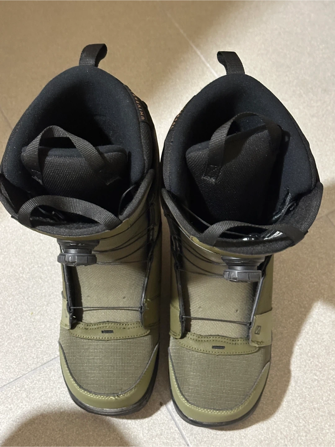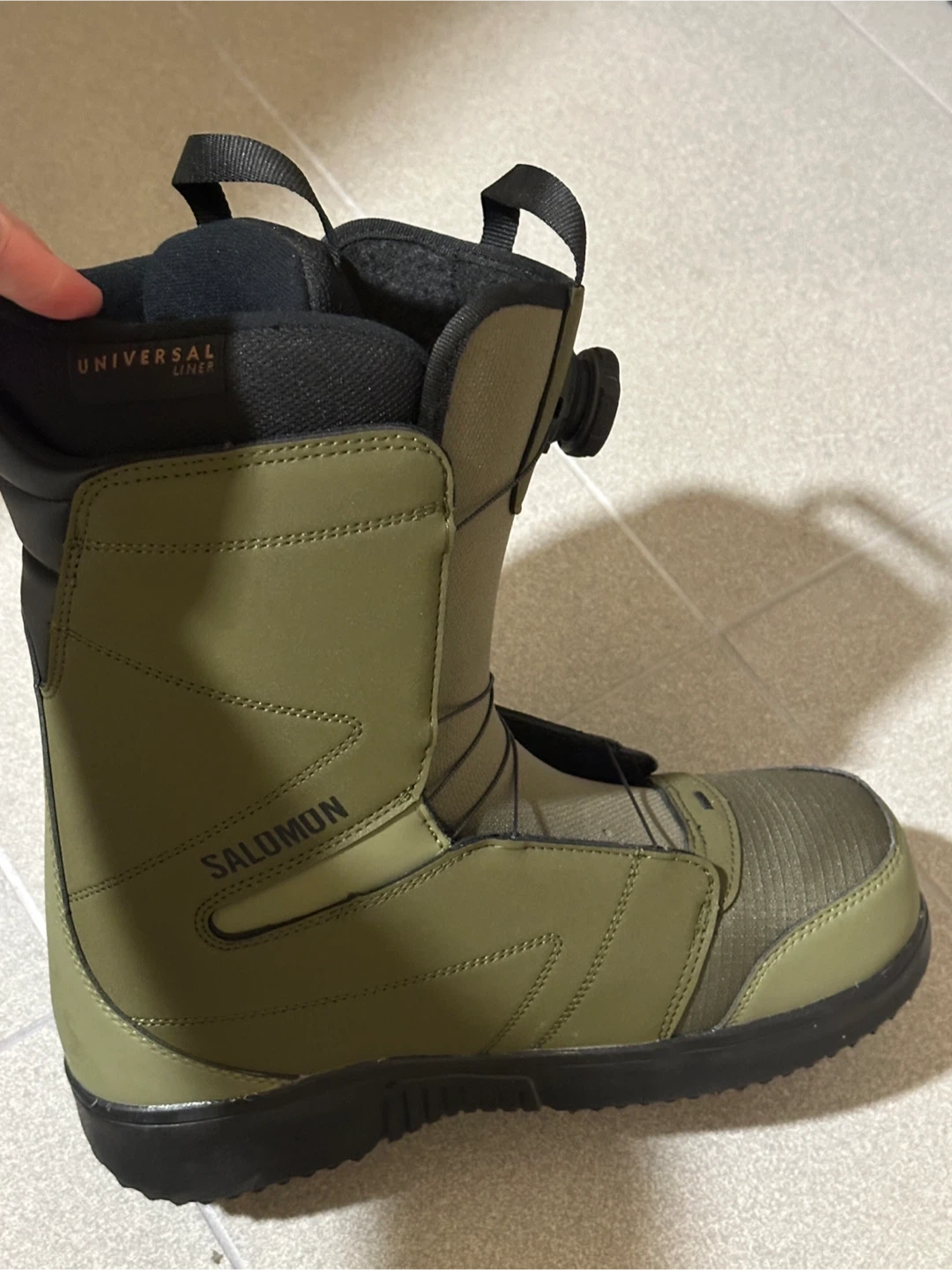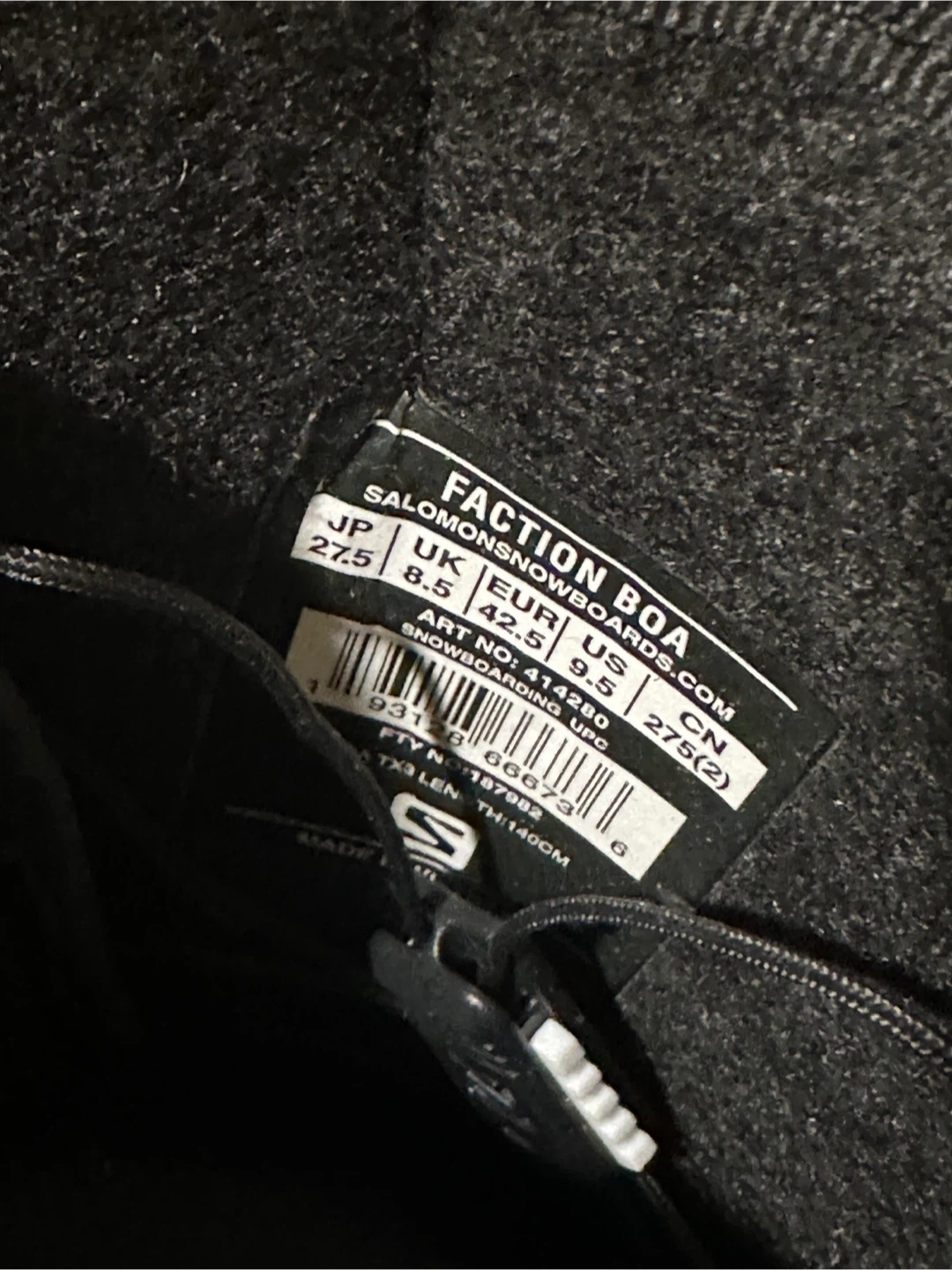 10Selling a pair of Salomon Faction Boa snowboard boots in US size 9.5. These boots feature the Universal Liner. They're in good condition and ready for the slopes! Only used 2 times