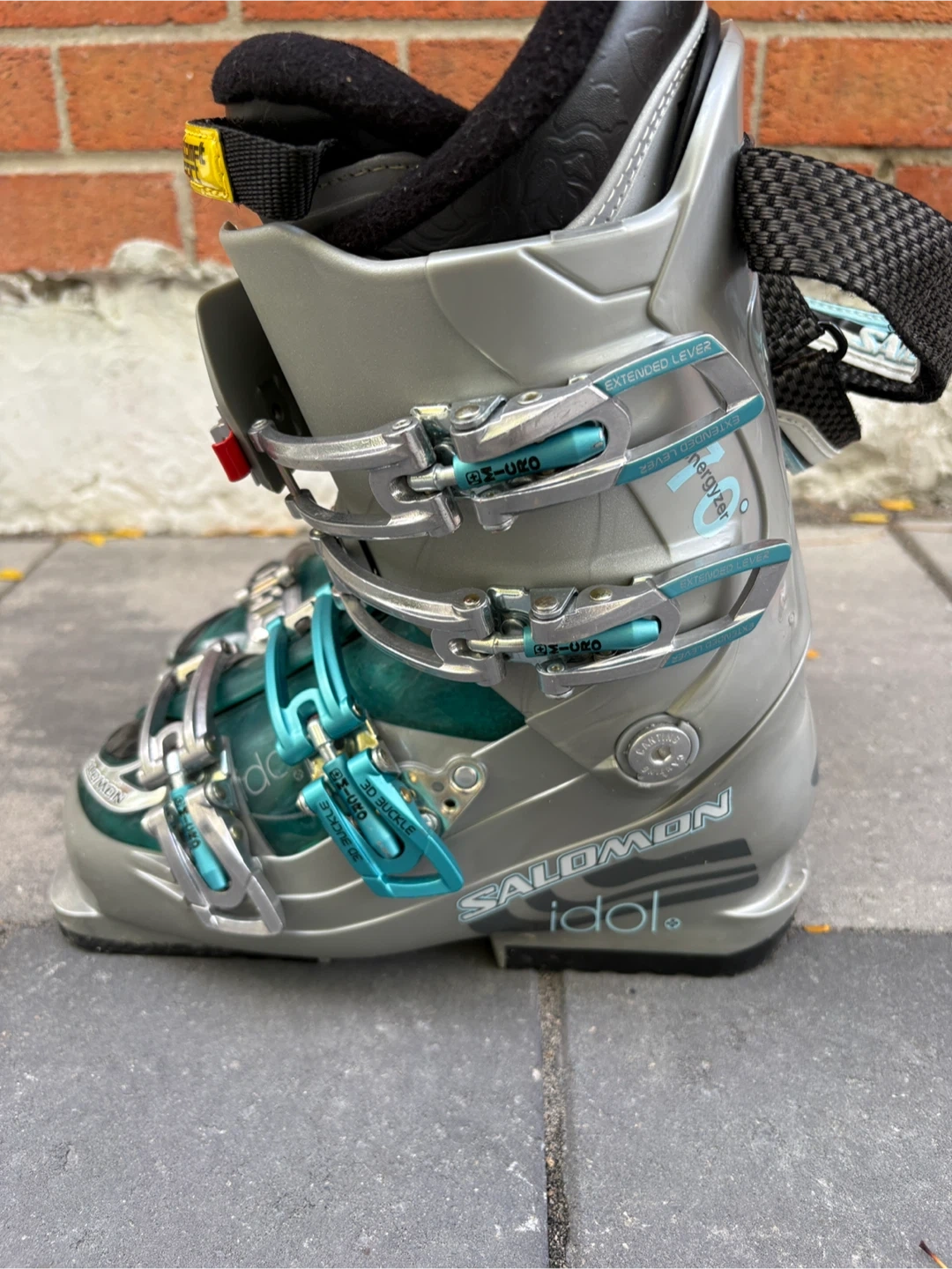 Selling a pair of Salomon Idol 75 ski boots in size 23.5. They are in great condition and ready for the slopes! The boots feature an extended lever and energyzer 75.