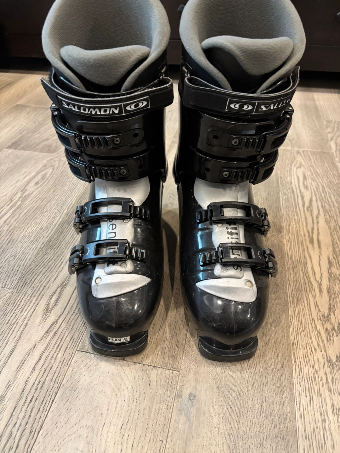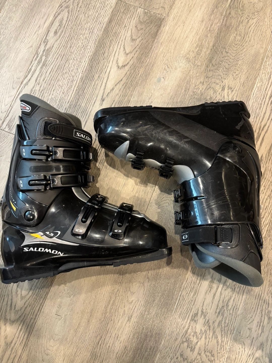 Selling a pair of Salomon ski boots. They are black and in good condition. The size is US 10.