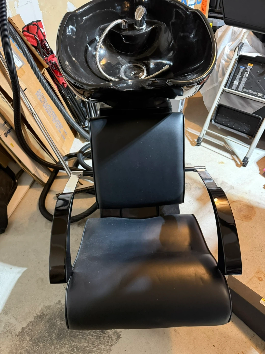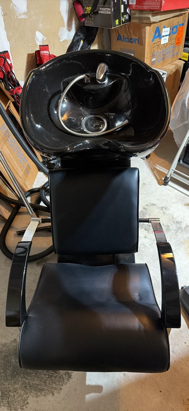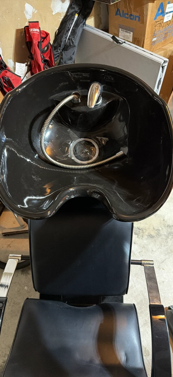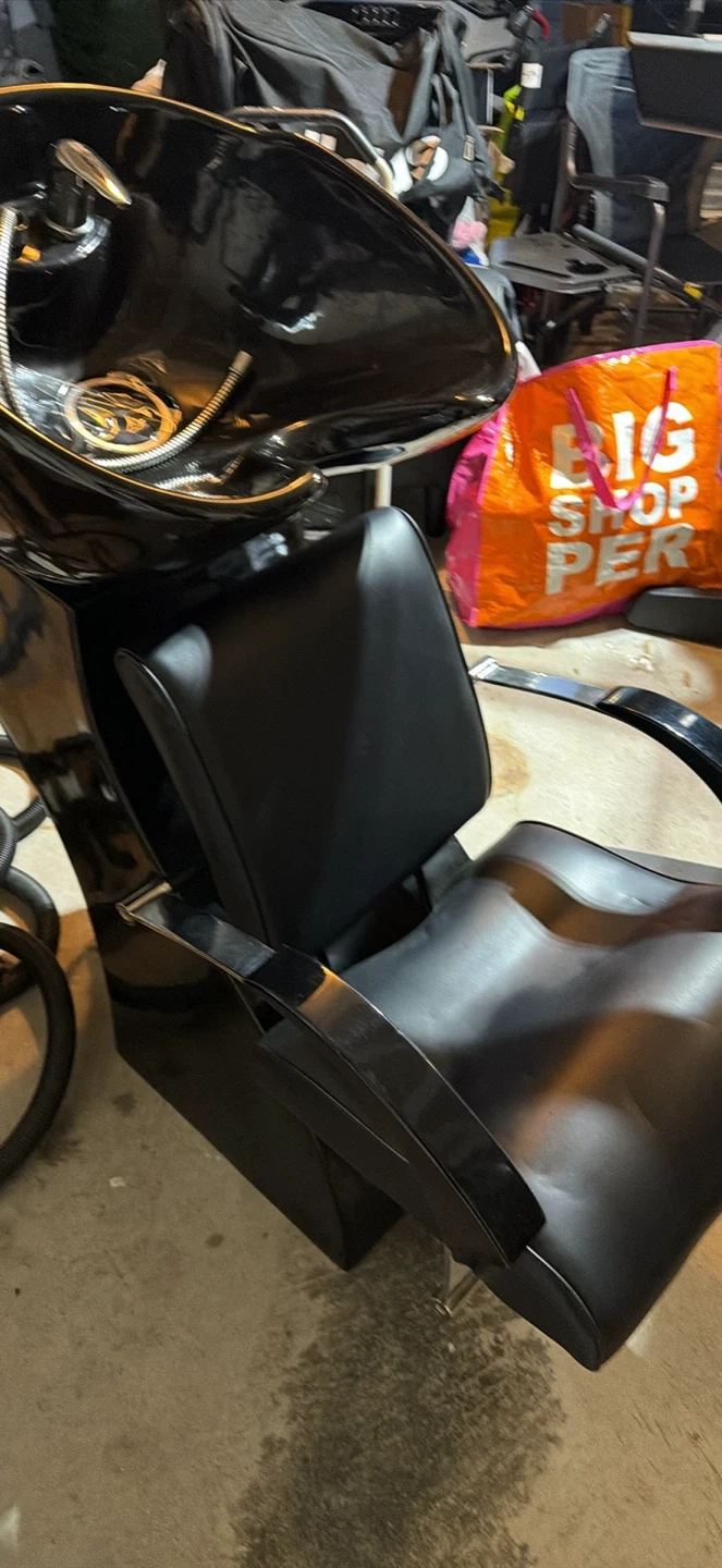 10Selling a salon shampoo chair in black. It's in good condition and ready for use in your salon or home setup. Great for washing hair comfortably!